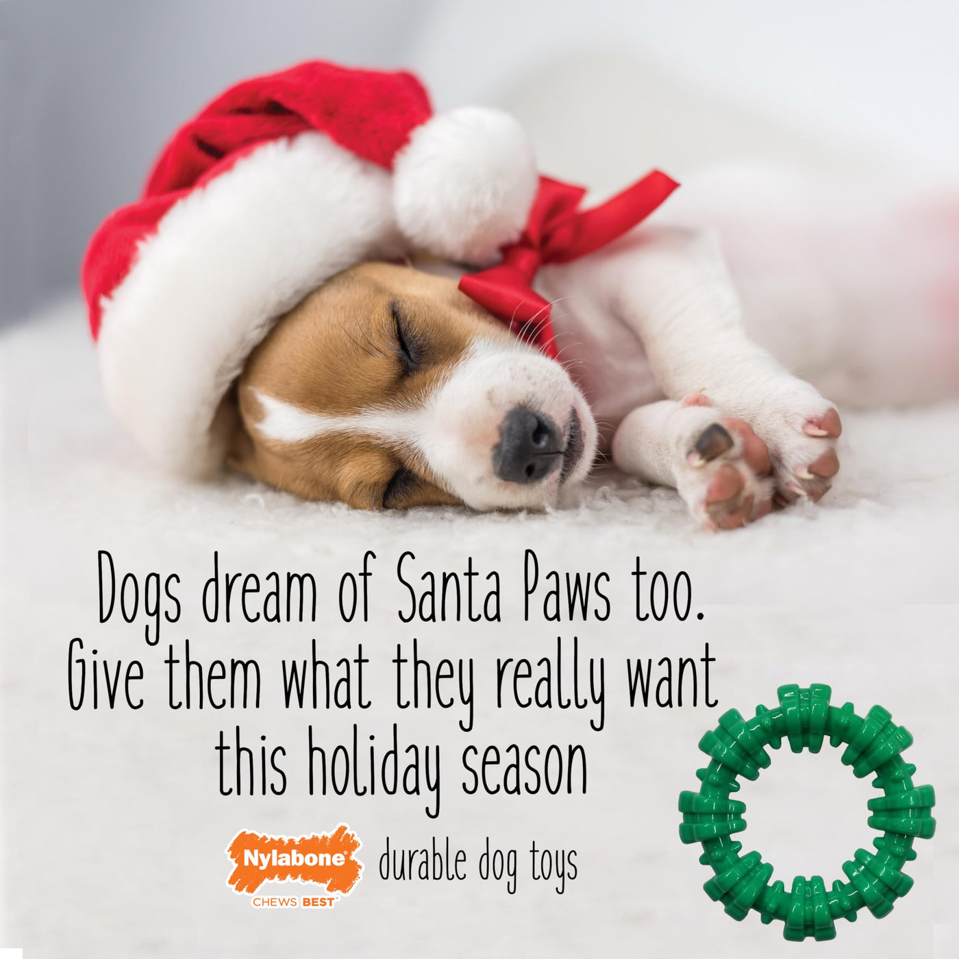Seeking the best holiday dog gifts for your furry friend's wish list? The Power Chew Holiday Textured Ring will satisfy your dog's natural urge to chew all season long! This fun chew toy for dogs makes the most wonderful time of the year even more special, keeping your best friend happy, busy, and entertained. It features an enticing texture and refreshing winter green flavor throughout that dogs love. Designed for extreme chewers, this long-lasting nylon chew toy promotes healthy, non-destructive behavior. Plus, it includes ridges and nubs to help clean teeth and freshen breath as your dog chews. This festive ring chew toy is veterinarian recommended and proudly made in the USA!What your dog chews matters! With destructive behavior among the leading reasons dogs are returned to shelters, we know healthy habits can make a life-changing difference. For 70 years, our family-founded brand continues to safely satisfy dogs’ chewing instincts and help them stay in loving forever homes!