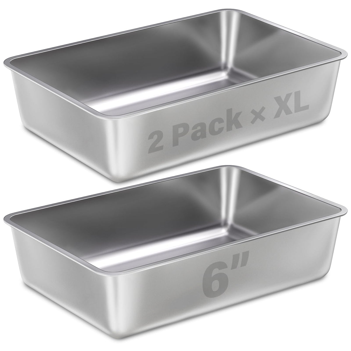 Nyutu Xl Stainless Steel Litter Box 2 Pack, 23.6''X15.8''X6''(Height) Extra Large Stainless Steel Cat Litterbox High Sides, Non