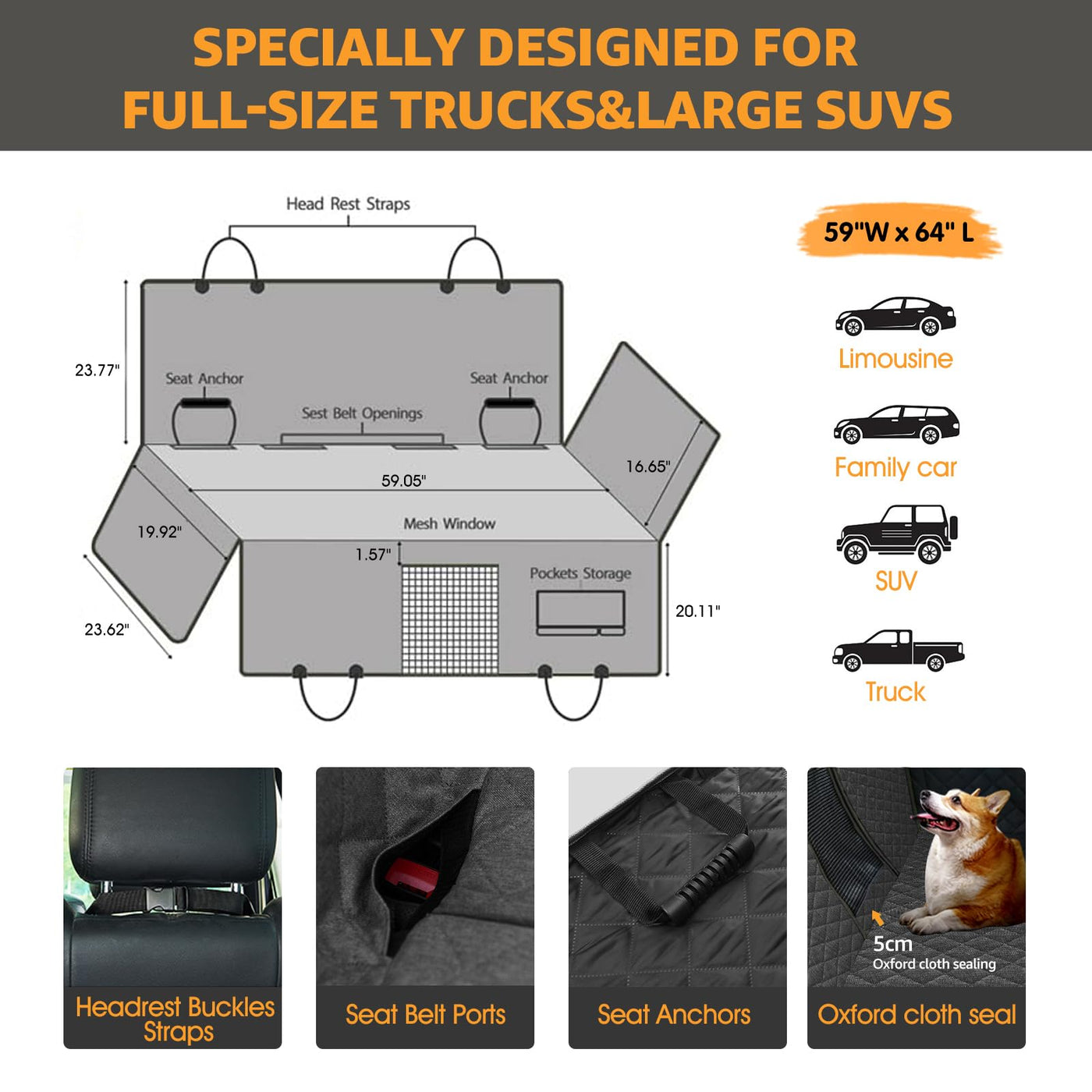 Nzonpet Dog Back Seat Covers For Trucks, 100% Waterproof With Big Mesh Window, Xl Nonslip Scratchproof Dog Truck Hammock, Heavy