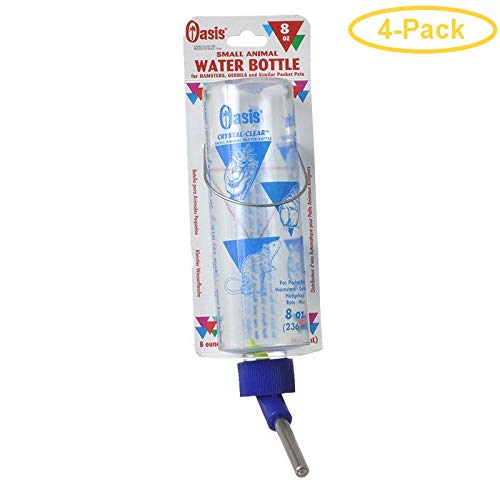 Oasis Small Animal Crystal Clear Water Bottles are the bottle of choice when clarity is desired and when the cage is kept indoors where exposure to direct sunlight is reduced minimizing the damaging effects of ultra-violet light on the bottle.Ideal for indoor cages with reduced direct sunlightDouble ball point vacuum-valveNo-leak design helps keep your cage dry from dripsWater Bottles come in assorted colorsWith Double Ball Point Vacuum-Valve. Ideal for Hamsters Hedgehogs Sugar Gliders Rats Mice Gerbils and Similar Small Animals and Pets.