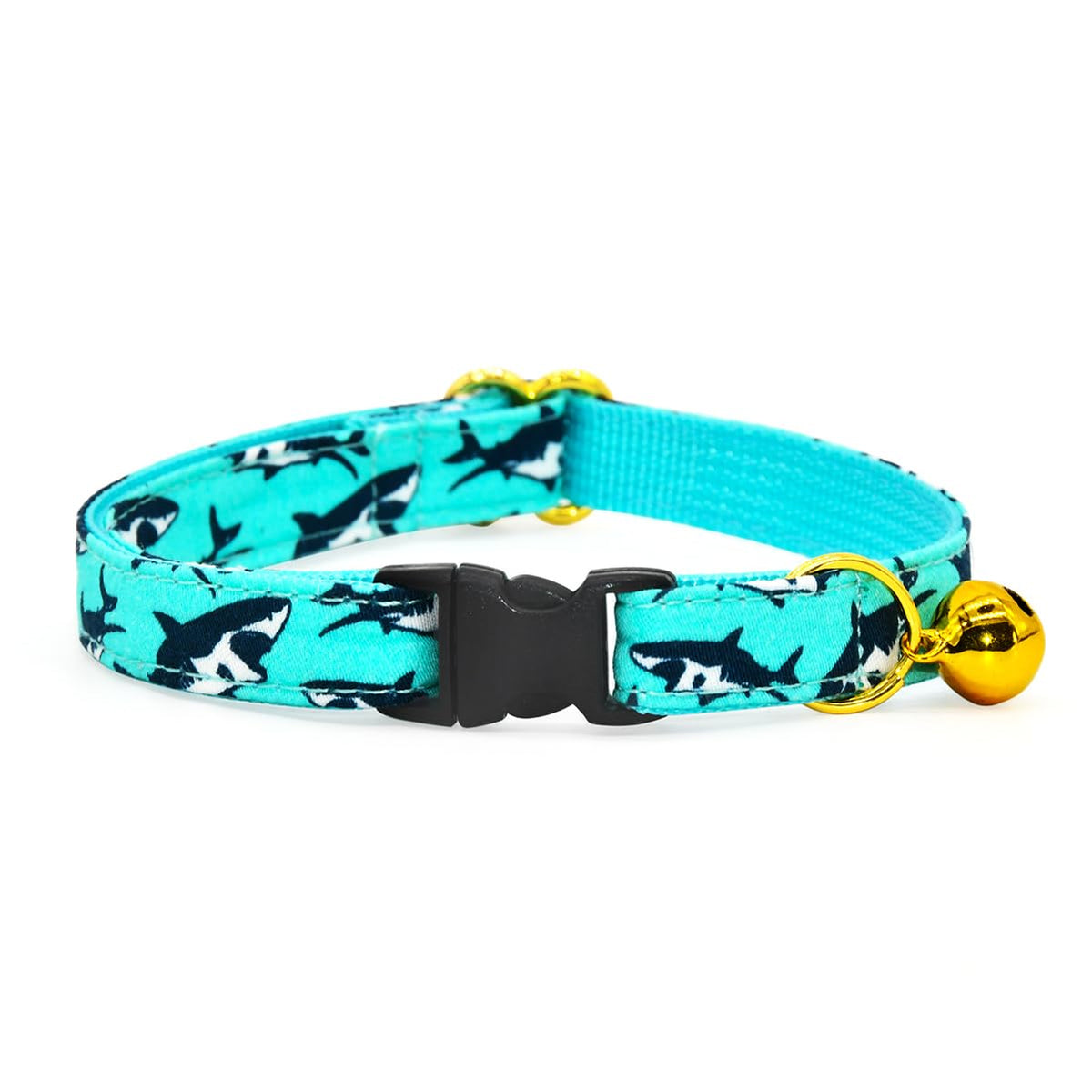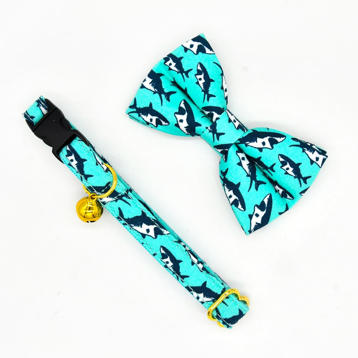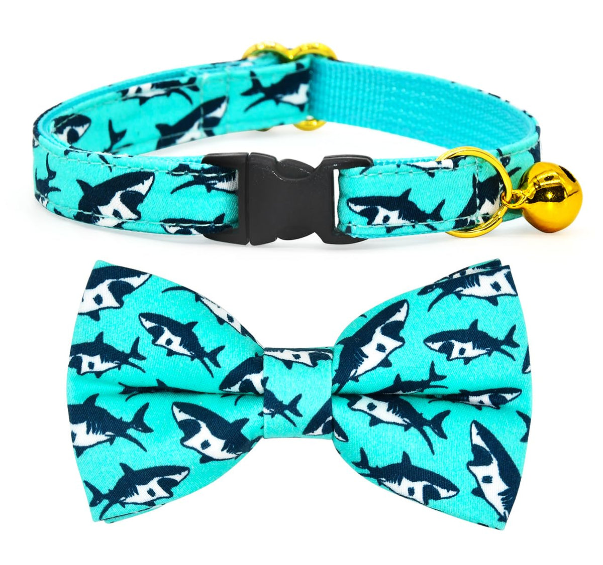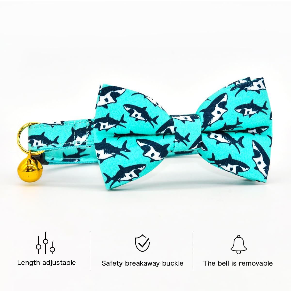 Oceanic Sharks Cat Breakaway Collar Bow Tie With Bell, Wedding/Birthday Cat Accessories