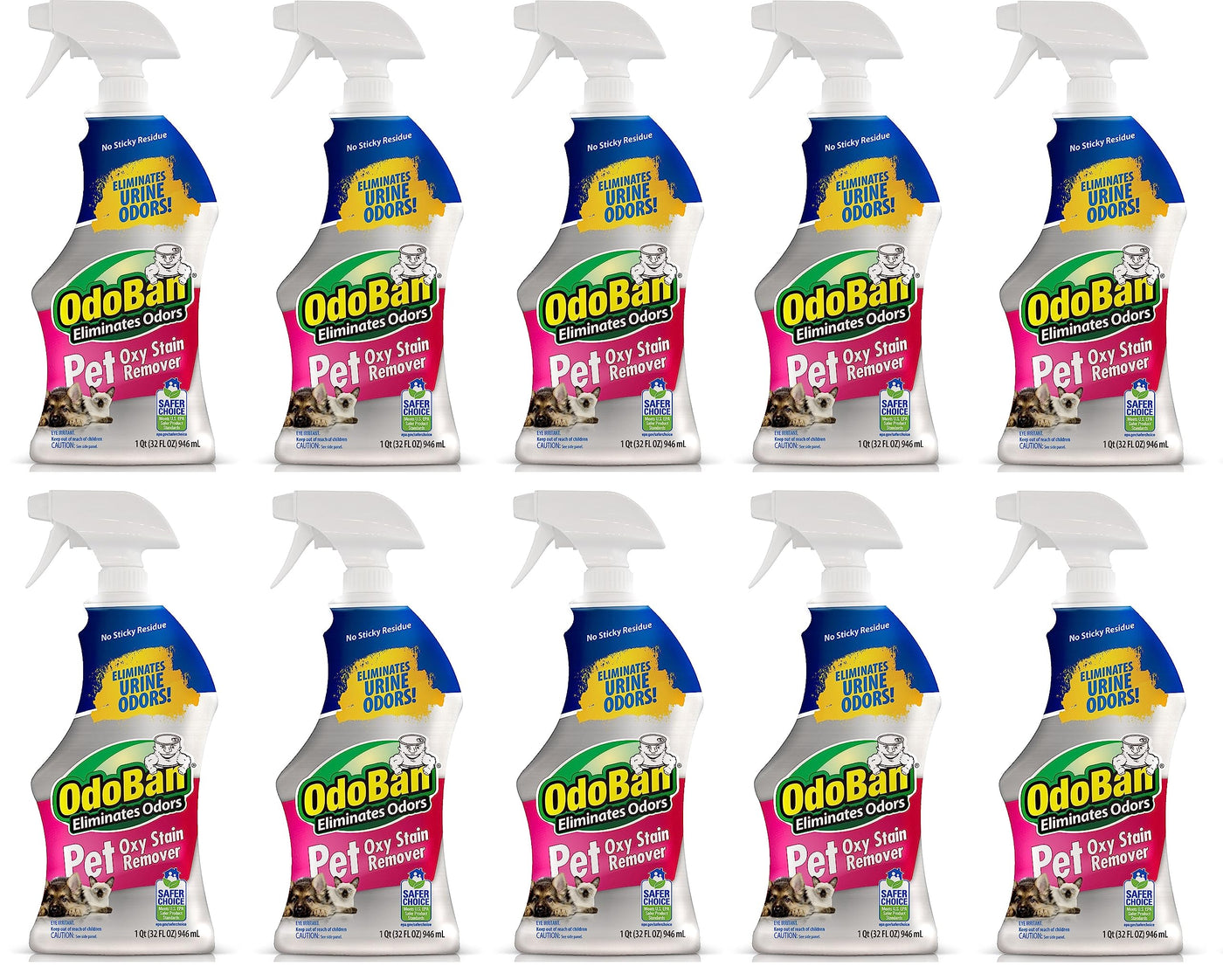 Odoban Pet Solutions Oxy Stain Remover, Pet Stain Eliminator, 10-Pack, 32 Ounce Spray Each