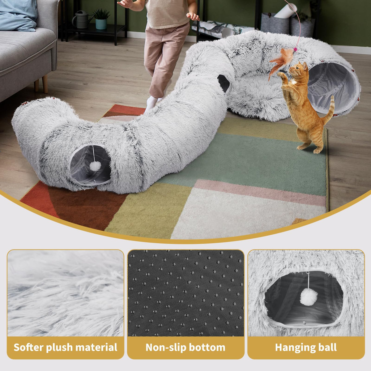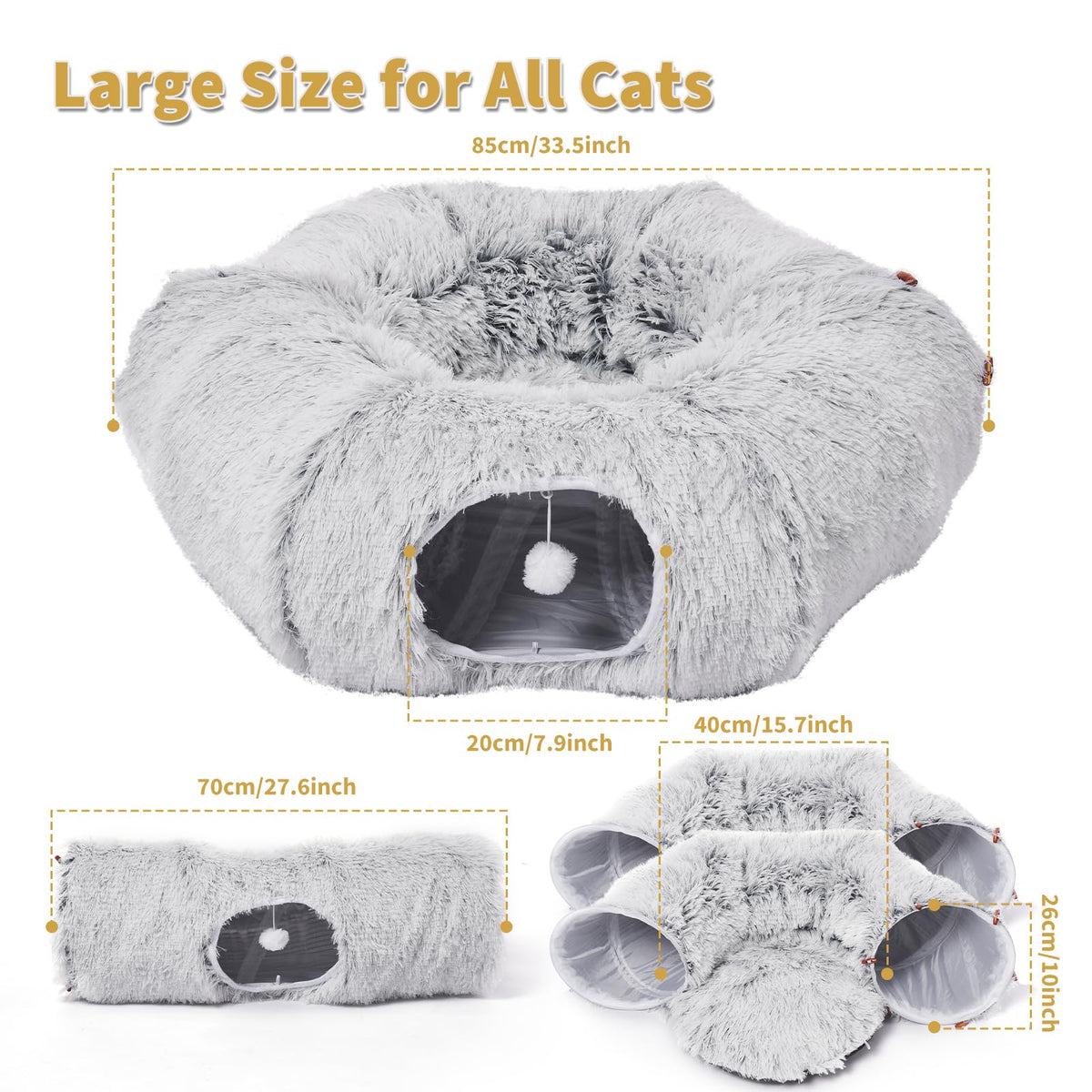 Introducing Our Cat Tunnel Bed With Soft Central Cat Couch And 20 Cat Toys, The Ultimate Kitty Playtime Package! This Complete Set Includes A Spacious Tunnel Bed, A Cozy Central Cat Couch, And A Variety Of Interactive Toys To Keep Your Furry Friend Entertained For Endless Hours Of Fun. The Cat Tunnel Bed Is Designed With High-Quality Materials, Ensuring Durability And Comfort For Your Cat. The Large Tube Tunnels Provide Ample Space For Your Cat To Explore, Hide, And Play To Their Heart'S Content. The Soft Central Cat Couch Offers A Cozy Spot For Your Cat To Relax And Nap In Between Play Sessions. But That'S Not All - The 20 Included Cat Toys Are Guaranteed To Keep Your Cat Engaged And Entertained. From Hanging Balls That Bounce And Swing To A Cat Donut Tunnel That Adds An Extra Element Of Excitement, This Toy Set Has It All. Your Cat Will Love Batting, Chasing, And Pouncing On These Toys, Satisfying Their Natural Instincts And Providing Them With Much-Needed Exercise. Not Only Is This Kitty Toy Set Designed For Fun, But It Also Promotes Healthy Chewing And Playing Habits. The Toys Are Made From Non-Toxic Materials, Ensuring The Safety Of Your Cat While They Indulge In Their Playful Activities. They Are Also Specifically Designed To Help Prevent Boredom And Encourage Mental Stimulation, Resulting In A Happy And Contented Kitty. This Cat Tunnel Bed Set Is Perfect For Both Indoor And Outdoor Use, Allowing Your Cat To Play And Explore In Any Environment. Whether You Have A Single Cat Or Multiple Feline Friends, This Toy Set Is Suitable For All Ages And Breeds. It Is Also Easy To Clean And Store, Making It A Convenient Addition To Your Cat'S Play Area.