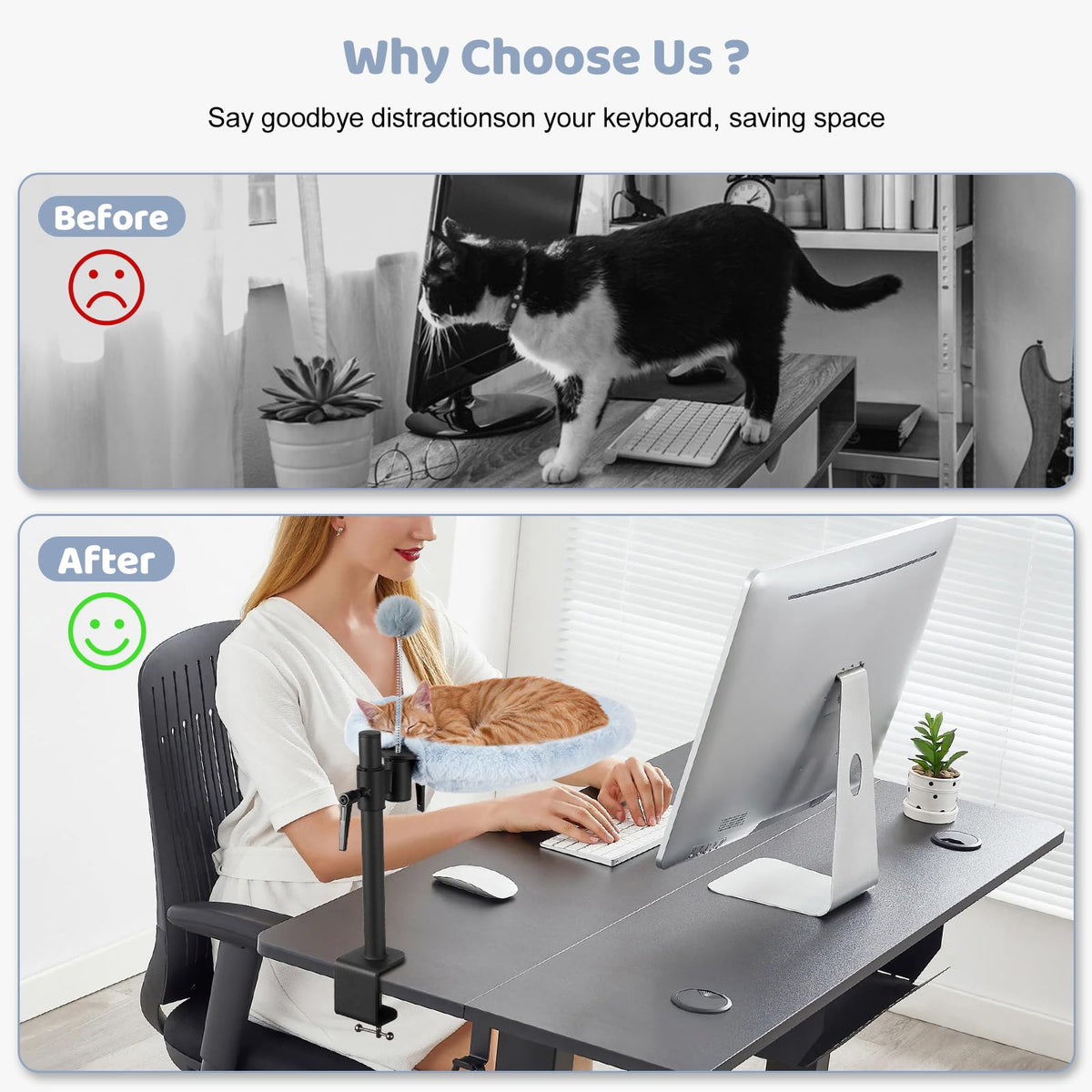 Odoland Cat Bed Desk Is The Ultimate Solution For Pet Owners Who Work Or Game From Home! Designed To Fit Perfectly On Your Table Without Taking Up Extra Space, It Gives Your Cat A Cozy Desk Nest To Relax In While Staying Close To You. The Desk Cat Perch Features A 360 Swivel And Adjustable Height, So You Can Easily Reposition It To Keep Your Cat Entertained And Comfortable. Made With Two Interchangeable Fabrics-Plush For Winter And Mesh For Summer-This Cat Desk Bed Is Perfect For Year-Round Use And Is Machine-Washable For Easy Cleaning. Its Sturdy Metal Frame Supports Up To 35-50 Lbs And Clamps Onto Your Desk Without Any Drilling, Making Setup A Breeze. Plus, The Raised Walls And Soft Padded Base Keep Your Cat Secure And Protect Your Desk From Scratches. Whether Youre Working, Gaming, Or Just Relaxing, This Desk Cat Perch Ensures Your Feline Friend Stays Happy And Close By, Helping You Stay Focused And Productive. Dont Miss Out On The Perfect Blend Of Comfort, Convenience And Companionship!