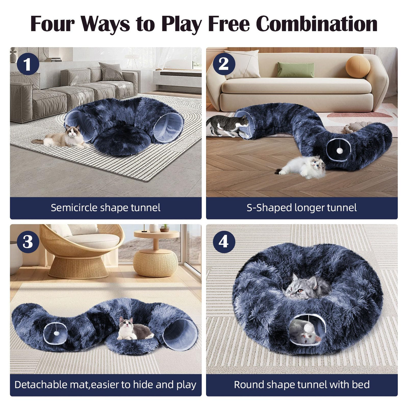 Introducing Our Cat Tunnel Bed With Soft Central Cat Couch And 20 Cat Toys, The Ultimate Kitty Playtime Package! This Complete Set Includes A Spacious Tunnel Bed, A Cozy Central Cat Couch, And A Variety Of Interactive Toys To Keep Your Furry Friend Entertained For Endless Hours Of Fun. The Cat Tunnel Bed Is Designed With High-Quality Materials, Ensuring Durability And Comfort For Your Cat. The Large Tube Tunnels Provide Ample Space For Your Cat To Explore, Hide, And Play To Their Heart'S Content. The Soft Central Cat Couch Offers A Cozy Spot For Your Cat To Relax And Nap In Between Play Sessions. But That'S Not All - The 20 Included Cat Toys Are Guaranteed To Keep Your Cat Engaged And Entertained. From Hanging Balls That Bounce And Swing To A Cat Donut Tunnel That Adds An Extra Element Of Excitement, This Toy Set Has It All. Your Cat Will Love Batting, Chasing, And Pouncing On These Toys, Satisfying Their Natural Instincts And Providing Them With Much-Needed Exercise. Not Only Is This Kitty Toy Set Designed For Fun, But It Also Promotes Healthy Chewing And Playing Habits. The Toys Are Made From Non-Toxic Materials, Ensuring The Safety Of Your Cat While They Indulge In Their Playful Activities. They Are Also Specifically Designed To Help Prevent Boredom And Encourage Mental Stimulation, Resulting In A Happy And Contented Kitty. This Cat Tunnel Bed Set Is Perfect For Both Indoor And Outdoor Use, Allowing Your Cat To Play And Explore In Any Environment. Whether You Have A Single Cat Or Multiple Feline Friends, This Toy Set Is Suitable For All Ages And Breeds. It Is Also Easy To Clean And Store, Making It A Convenient Addition To Your Cat'S Play Area.