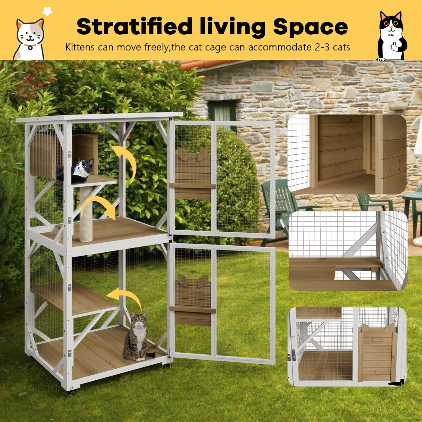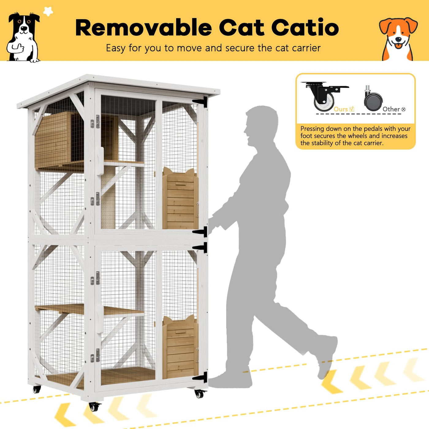 OFIKA Cat House Catio Outdoor Enclosure with Waterproof Roof,71 cat House & Condos on Wheels for Outdoor Patio,Cat Window Box,