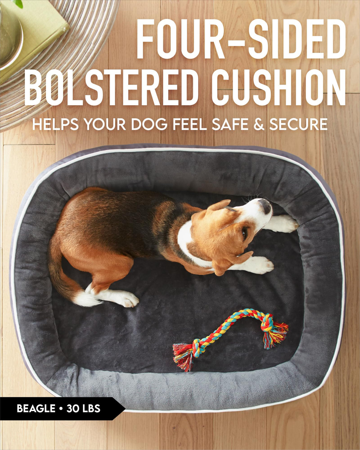 Ohgeni Orthopedic Dog Bed Couch For Large Sized Pets With Egg Foam Support, Four-Sided Bolster Cushions, Soft Tear-Resistant Fabric, And Removable Machine Washable Plush Cover 35-Inch (Gray)