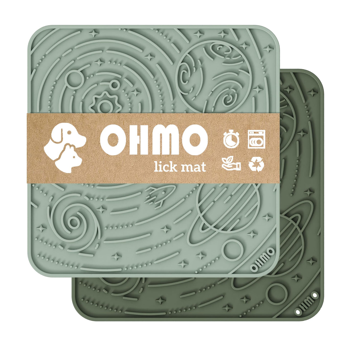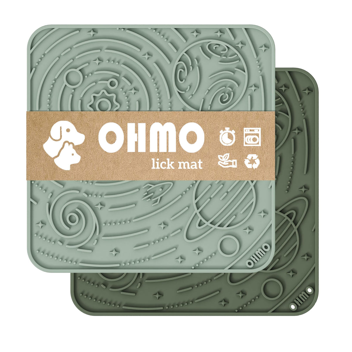 Ohmo Lick Mat For Dogs And Cats(Large, Camo&Light Green, 2Pcs) Enrichment Accessories Toy Space Star Easy Clean Pet Slow Feeder/