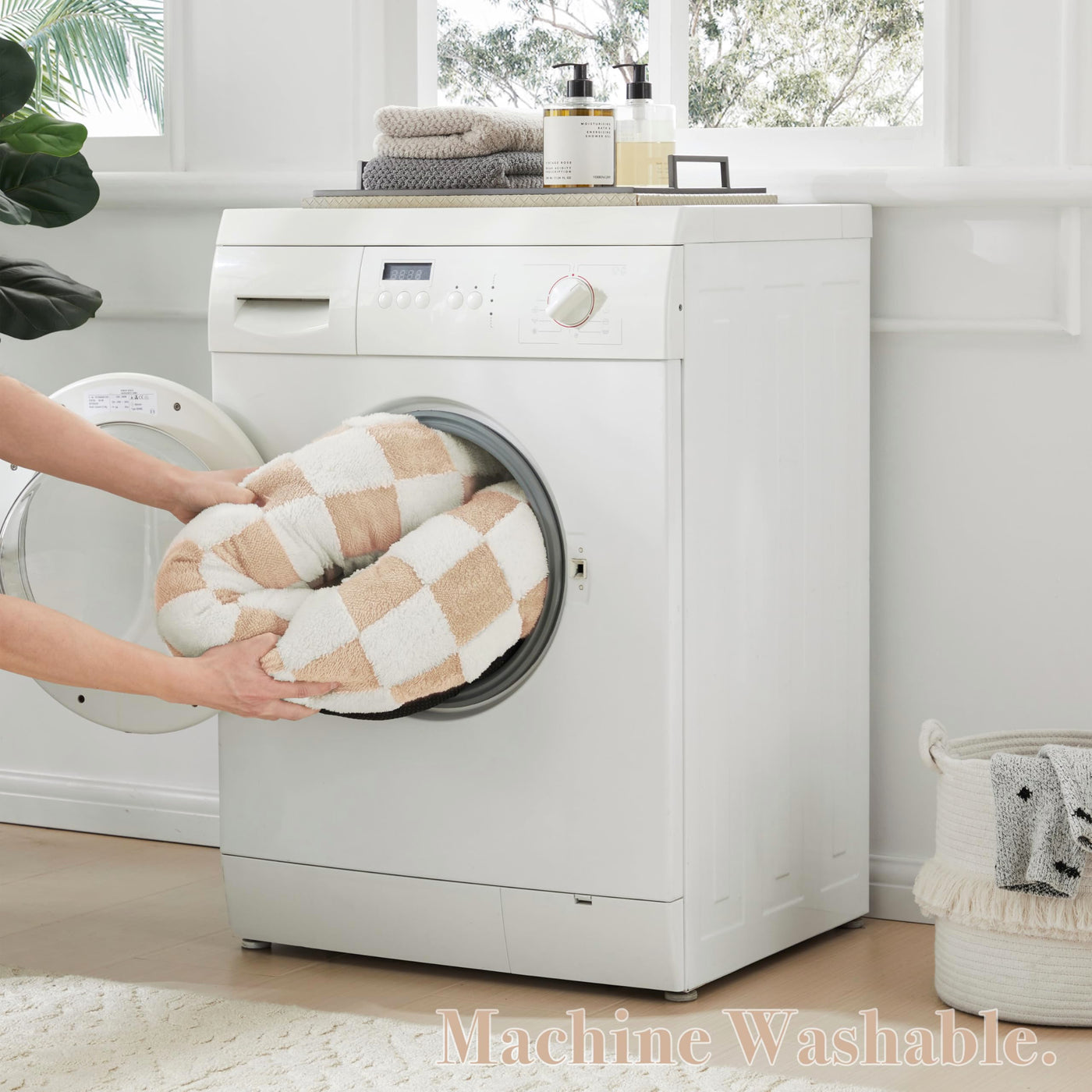 Ohocut Checkered Cat Dog Bed, Cute Beige Khaki Retro Style Aesthetic Round Warming Pet Calming Beds For Small Dog And Cats, Plus