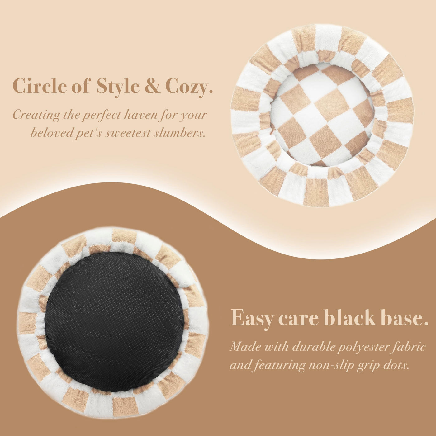 Ohocut Checkered Dog Bed, Cute Beige Khaki Retro Style Aesthetic Round Warming Pet Calming Beds For Small Dog And Cats, Plush Co