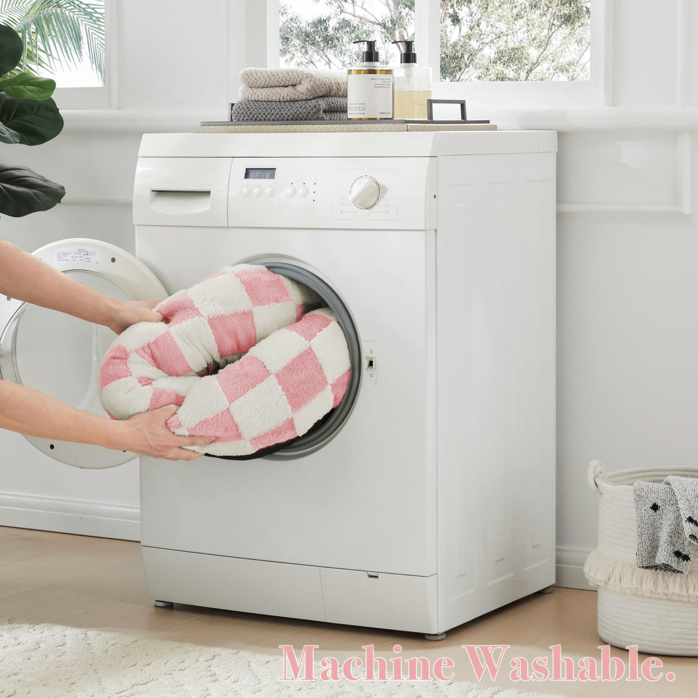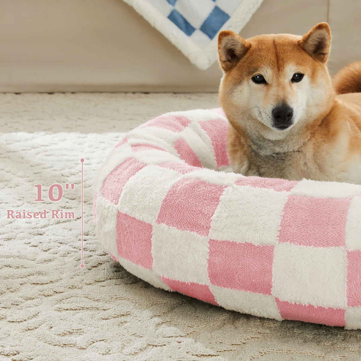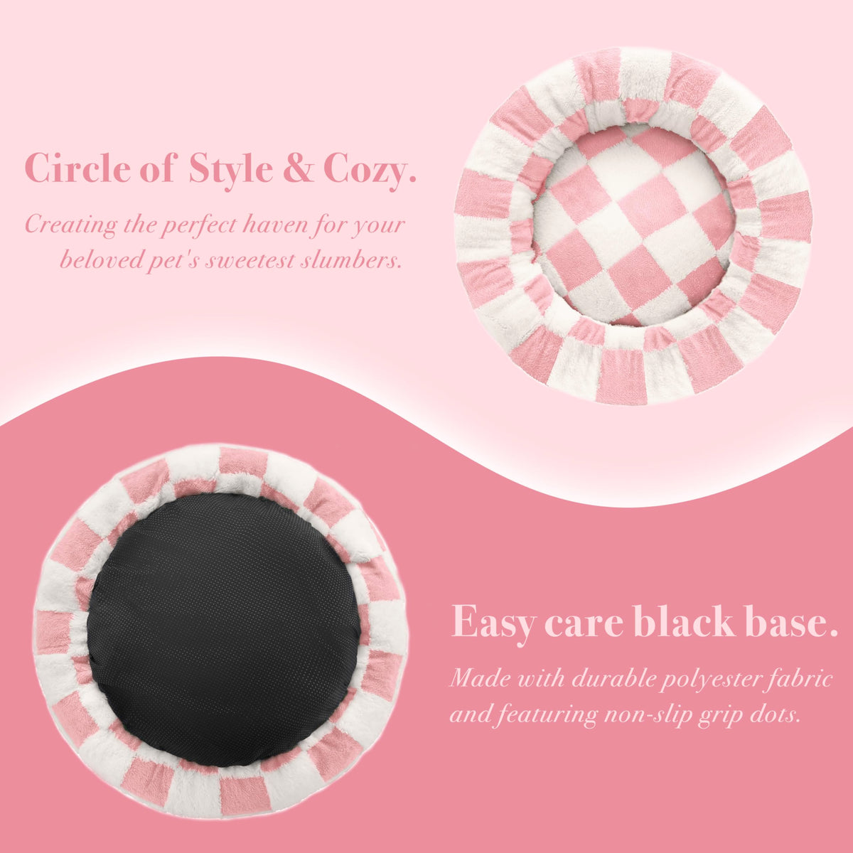 Ohocut Checkered Dog Bed, Cute Girly Pink Retro Style Aesthetic Round Warming Pet Calming Beds For Small Dog And Cats, Plush Coz