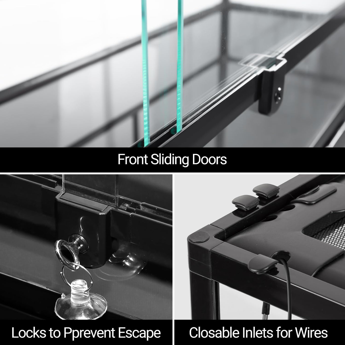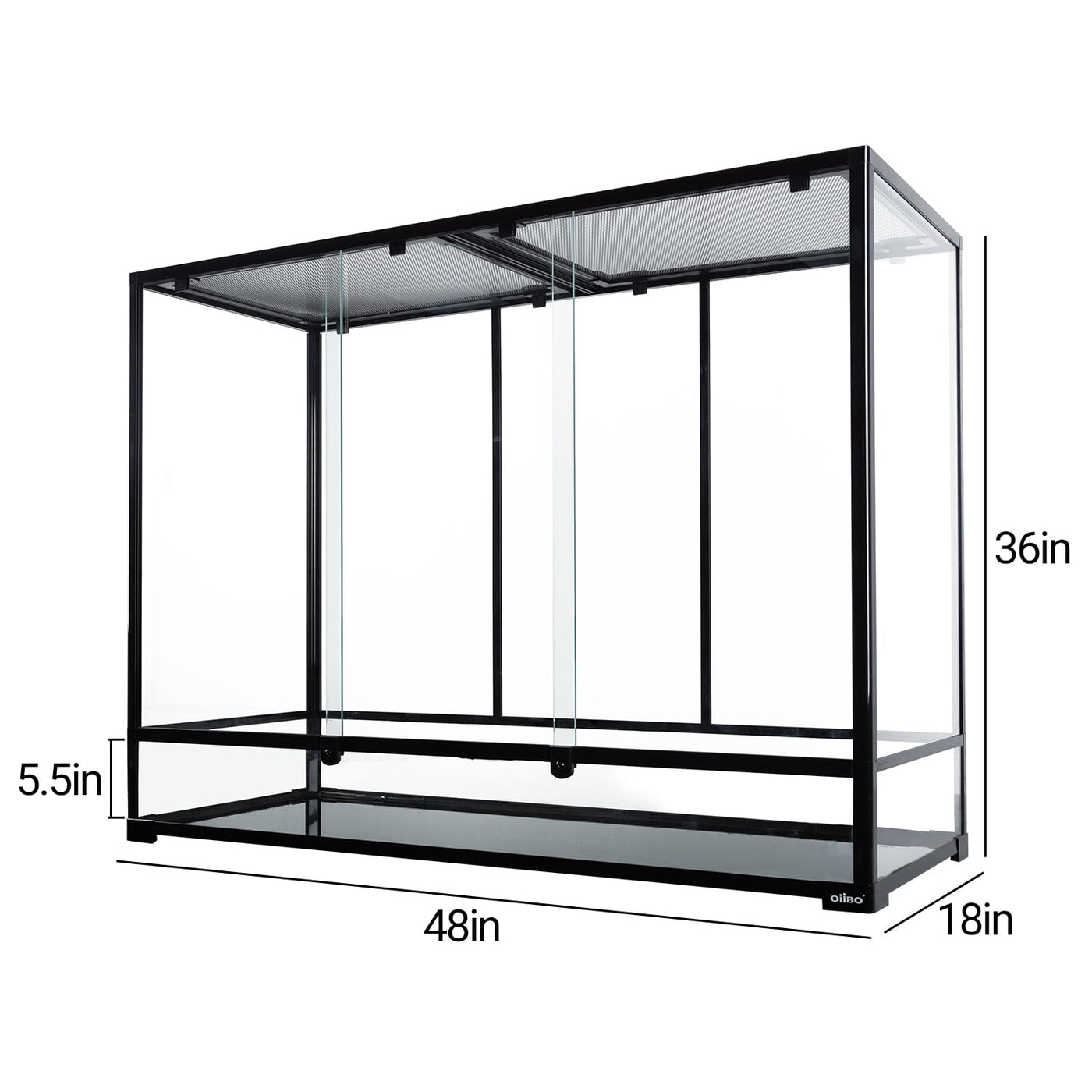 Oiibo 135 Gallon Tall & Extra-Long Reptile Terrarium, 48'' X 18'' X 36'' Full Tempered Glass Vertical Reptile Tank, Front Sliding Door With Top Screen Ventilation Reptile Amphibians Habitat Enclosure Cage