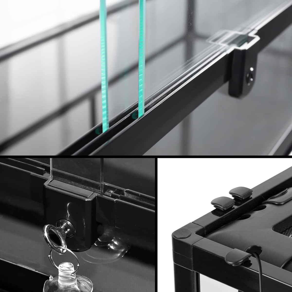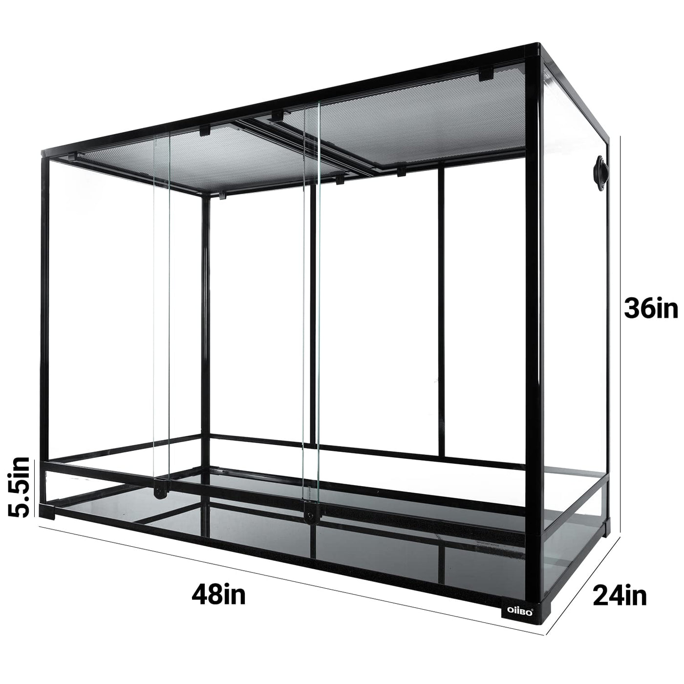 Oiibo 180 Gallon Larger Reptile Terrarium Made Of High Quality Tempered Glass, Provide 360 Full Views To Observe The Activity Of Pets. Double Mesh Screen Provides Plenty Of Ventilation For Optimum Airflow And Allows Full Spectrum, Uvb And Ir Light Penetration. 48'' X 24'' X 36'' Large Size Can Provides Enough Room For Reptiles, And Easy To Create A Natural And Comfortable Environment To Your Loved Pet!