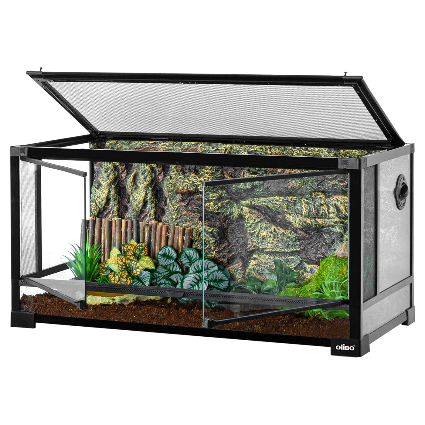 Oiibo 36 Gallon Reptile Terrarium Glass Tank, 32'X16'X16' Double Front Opening Door With Screen Ventilation Reptiles Or Amphi