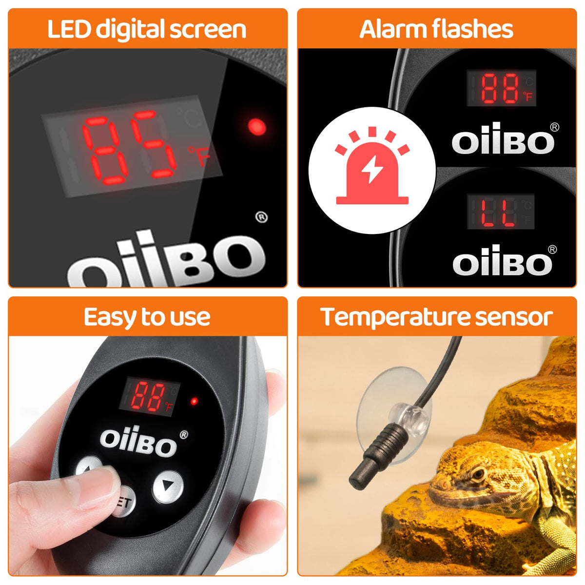 Oiibo Reptile Dimming Thermostat Can Compatible With Heat Lamp, Heat Pad And Other Device. Perfect For Reptiles, Pet Breeding, Hatching, Seedling Germination Or Anything Else That Need To Control Temperature.