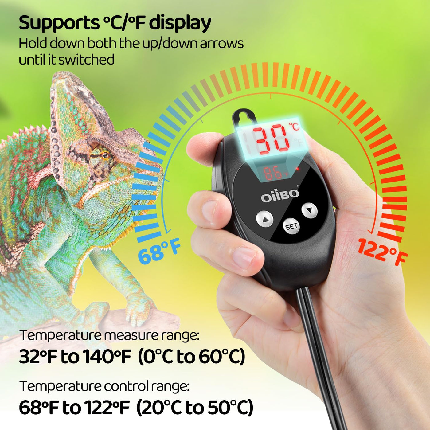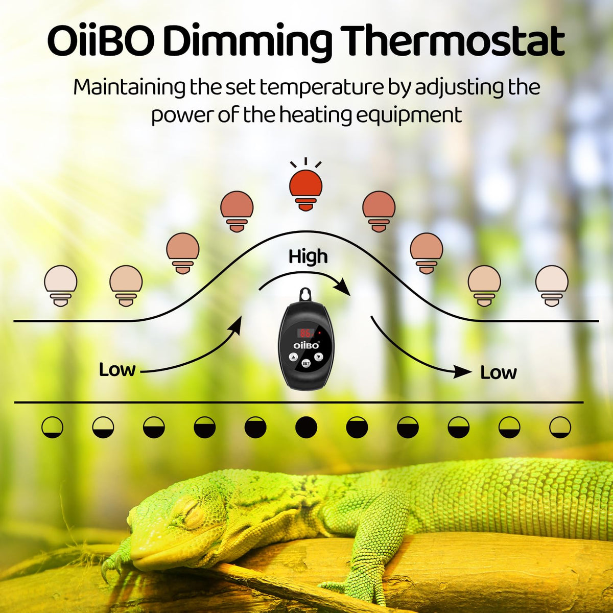 Oiibo Reptile Dimming Thermostat Heat Lamp Temperature Controller, Light Bulb Thermostat With Memory Function, Thermostat For Se