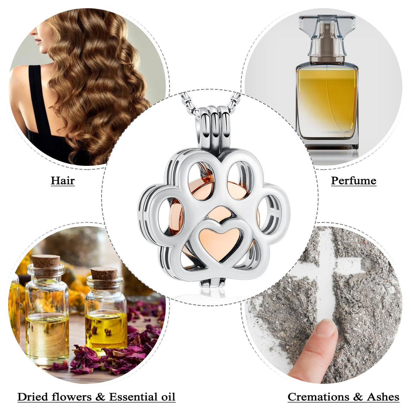 Oinsi Pet Cremation Jewelry For Ashes For Dog/Cat Paw Stainless Steel Memorial Locket Urn Necklace Inside Mini Case Keepsake Cremation Jewelry Women Men (Silver With Rose Gold)
