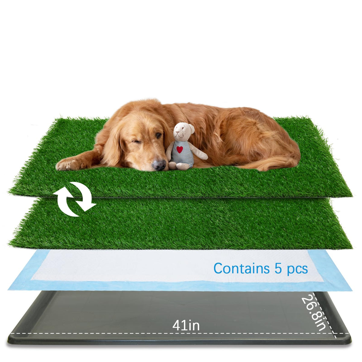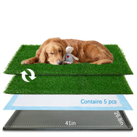 Oiyeefo Dog Grass Pad With Tray,41 X 26.8 Indoor Dog Potty With 2 Packs Replacement Artificial Fake Grass-5 Packs Disposabl