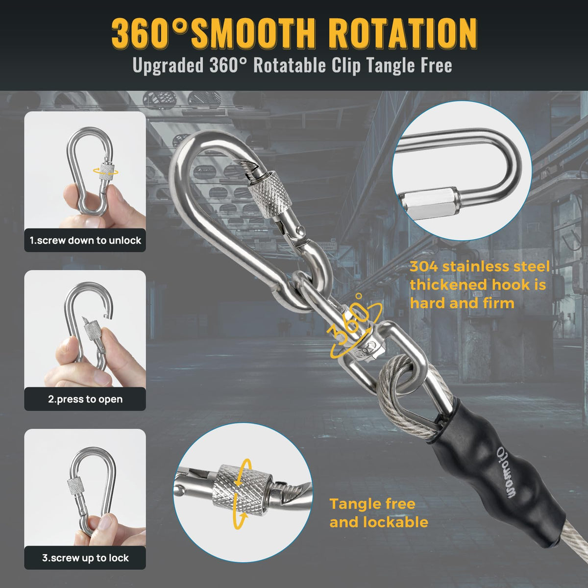 Ojomow Heavy Duty Dog Tie Out Cable For Stake, Anti-Rusty Long Dog Leash For Large Dogs - Actual 2000Lbs Break Strength (20Ft)