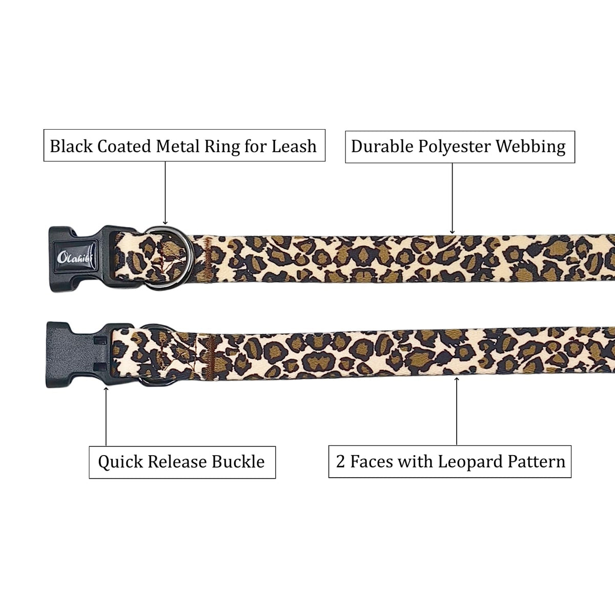Olahibi Basic Dog Collar, Leopard Pattern, Soft And Durable Polyester Material, Adjustable Length, For Large Dogs.(Large, Brown