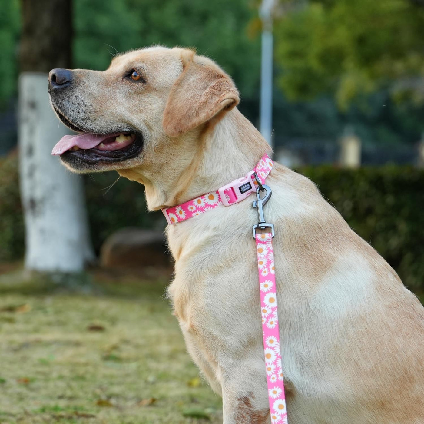 Olahibi Dog Collar And Leash Set, Cute Pink Daisy Pattern, Polyester Material, 5Ft Leash, For Puppy Dogs.(Extra Small, Pink Dais