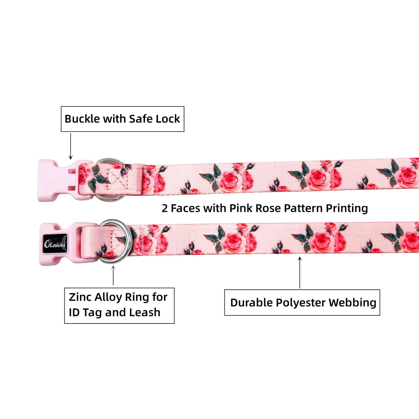 Olahibi Dog Collar And Leash Set, Cute Rose Pattern, Polyester Material, 5Ft Leash, For Puppy Dogs.(Extra Small,Pink Rose)