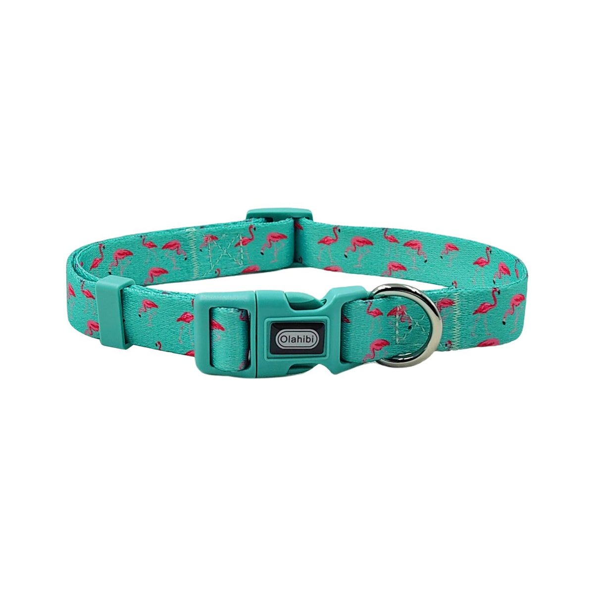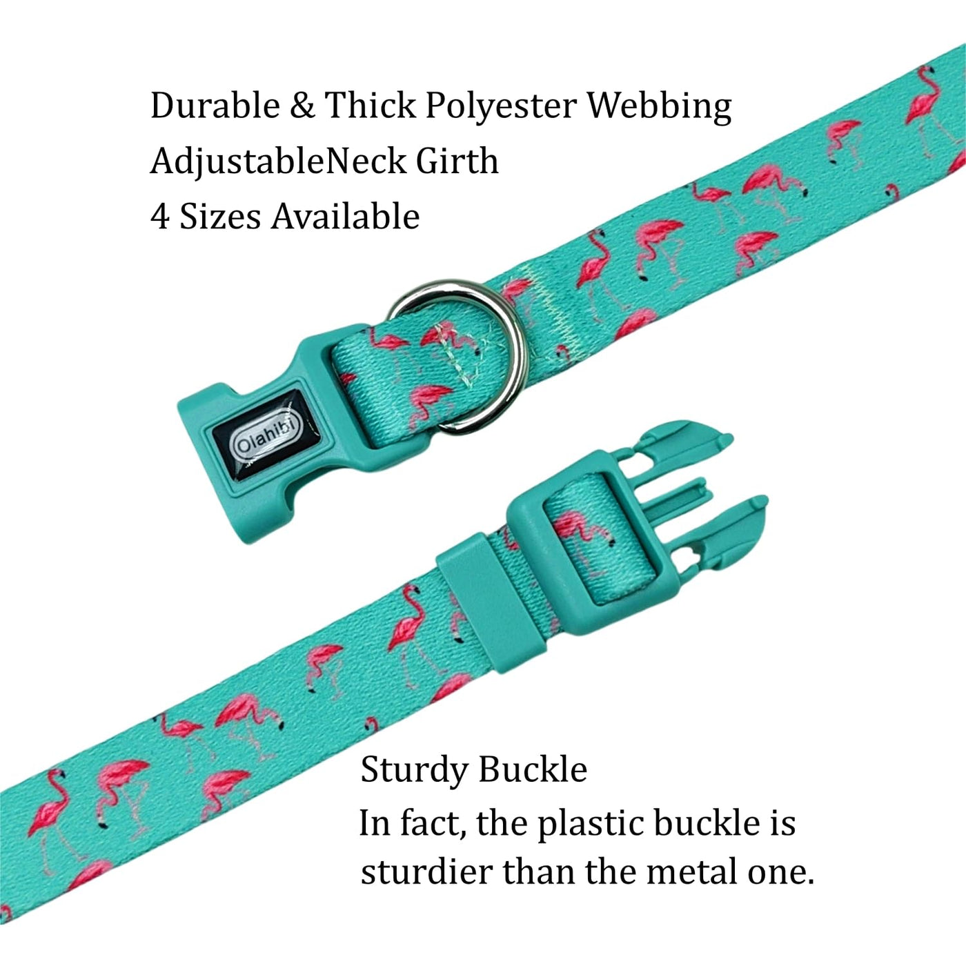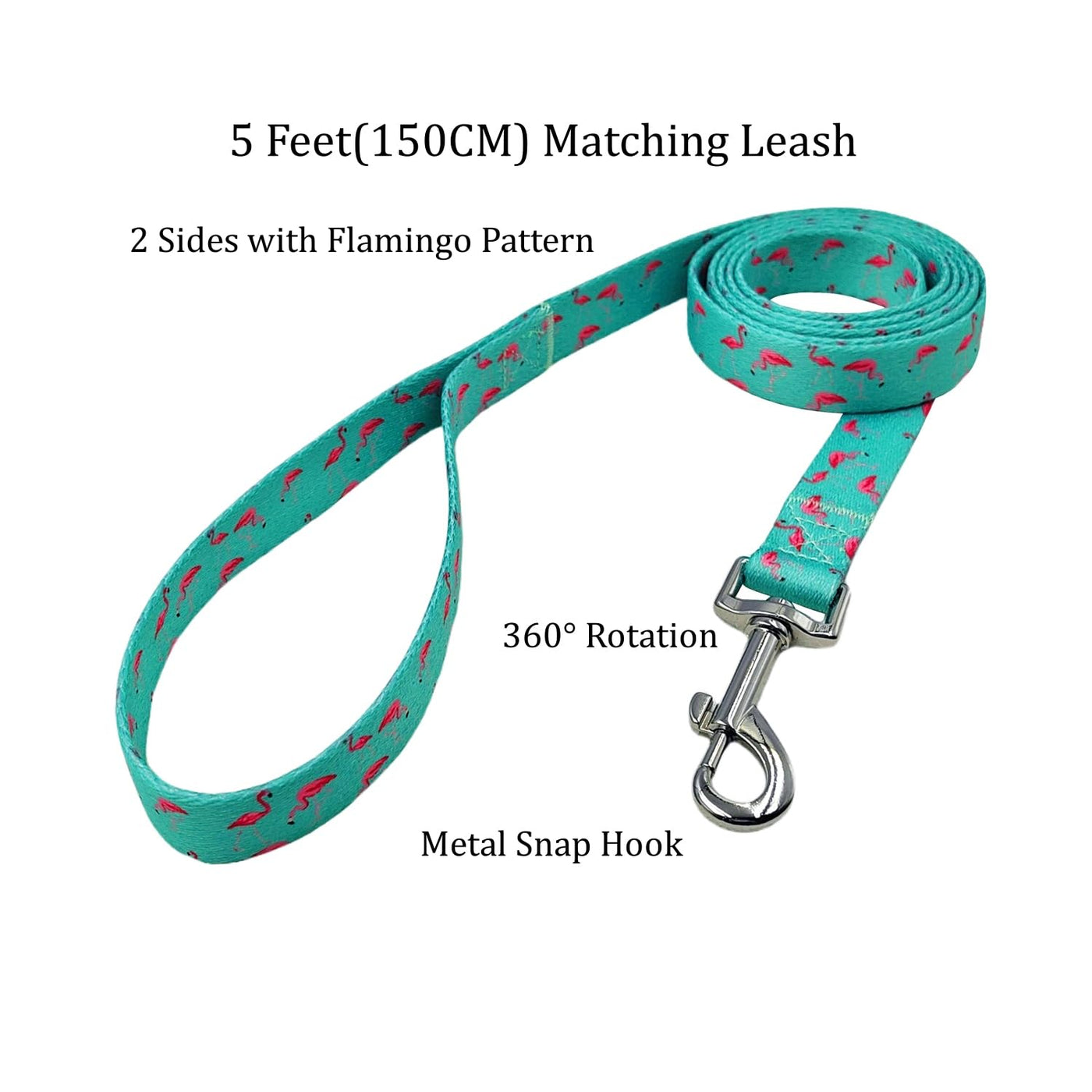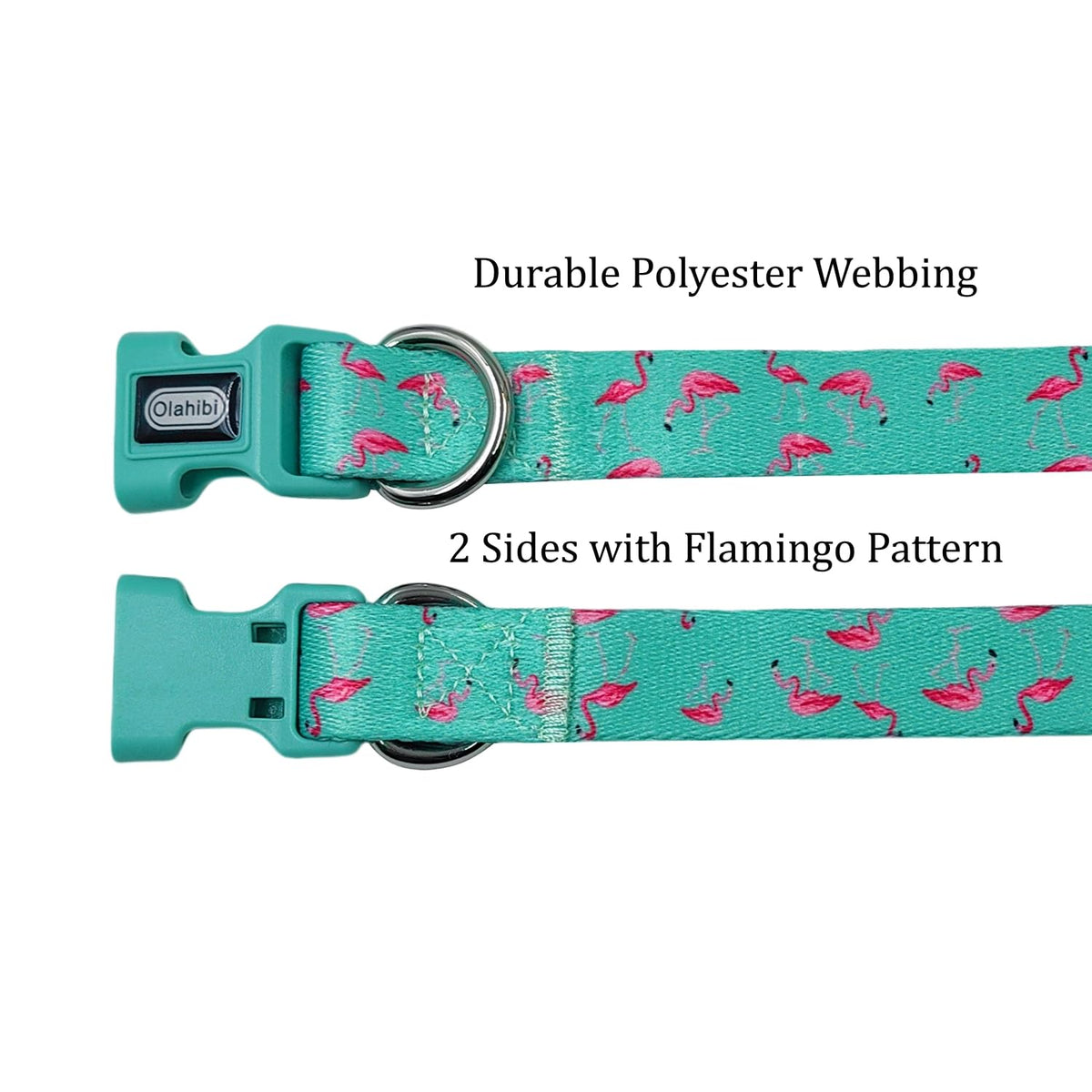 Olahibi Dog Collar Leash Set, Flamingo Pattern, Polyester Material, Adjustable Collar And 5Ft Matching Leash, For Medium Dogs.(M