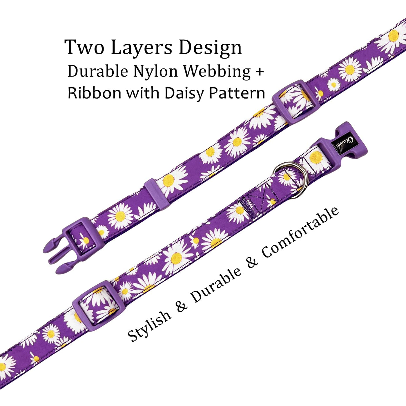 Olahibi Dog Collar Leash Set, Floral Pattern, Nylon Webbing Plus Cotton Ribbon, 5Ft Matching Leash, For Large Dogs.(L, Purple Da