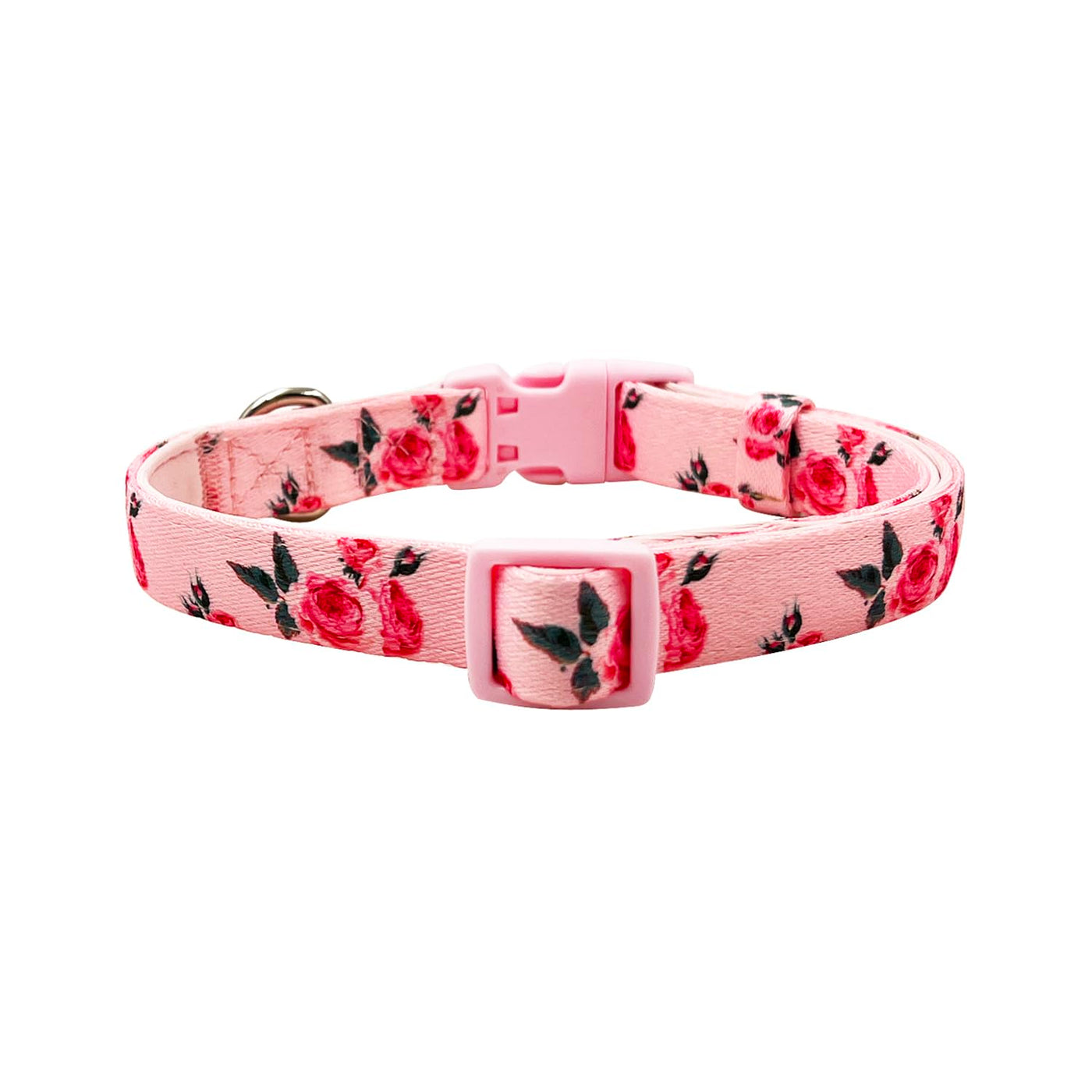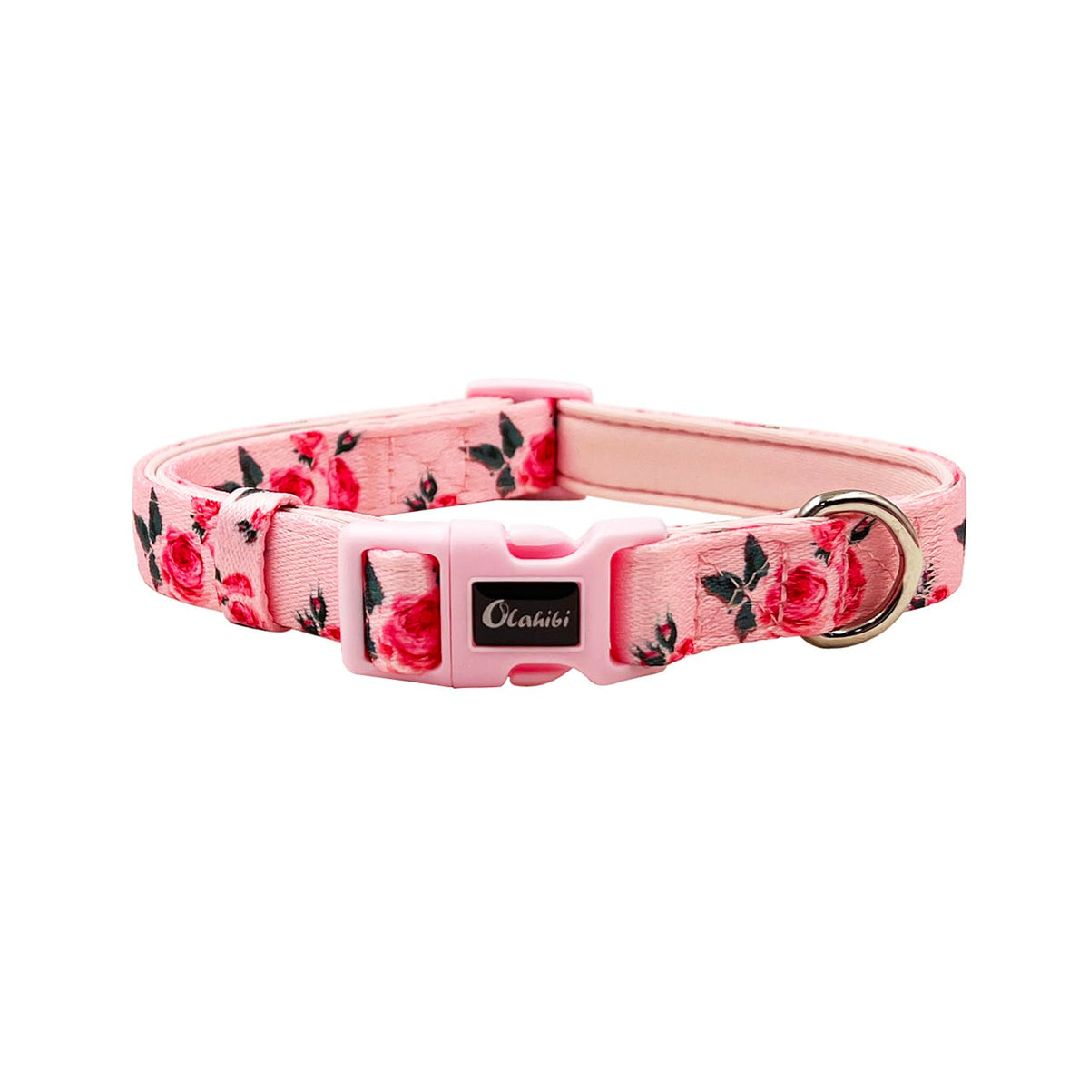 Olahibi Pink Rose Pattern Dog Collar, Polyester Material, With Soft And Comfortable Neoprene Padding,For Medium Dogs(M,Pink Rose