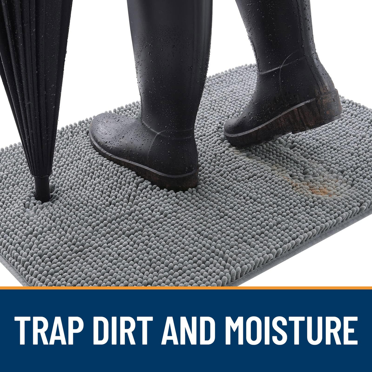 OLANLY Dog Door Mat for Muddy Paws 59x24, Absorbs Moisture and Dirt, Absorbent Non-Slip Washable Doormat, Quick Dry Chenille Mud Mat for Dogs, Entry Indoor Entryway Carpet for Inside Floor, Grey