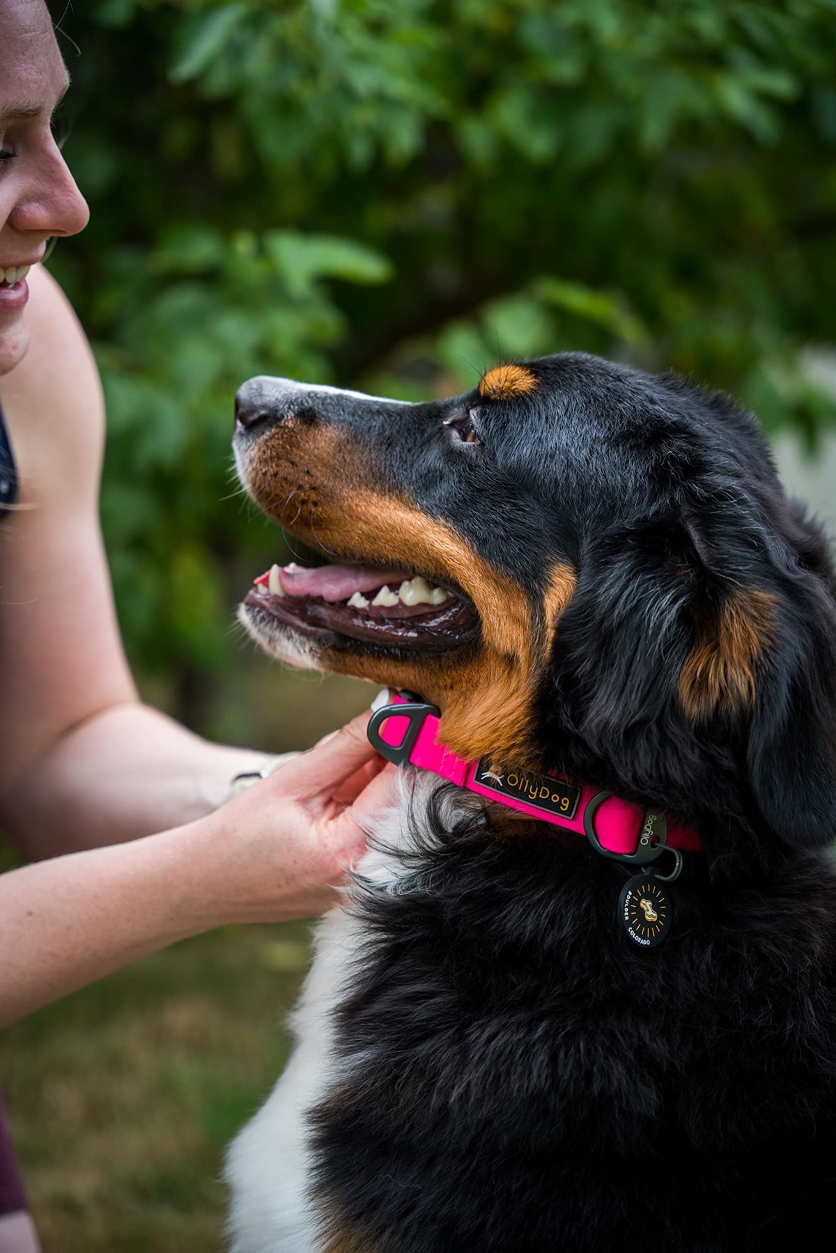 Ollydog Tilden Collar, Waterproof Dog Collar With Quick Release Buckle, Coated Stink-Proof Webbing, Lightweight Collar For Large, Medium And Small Dogs (Medium, Pink)