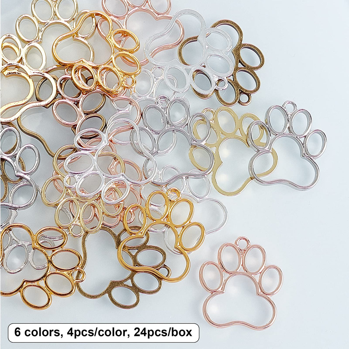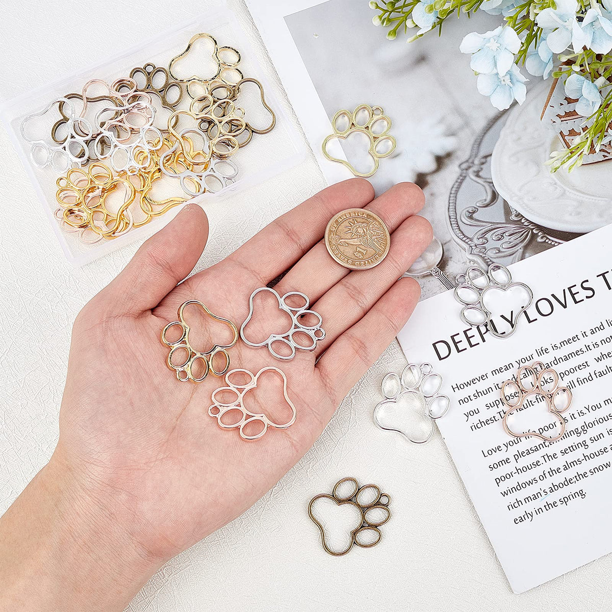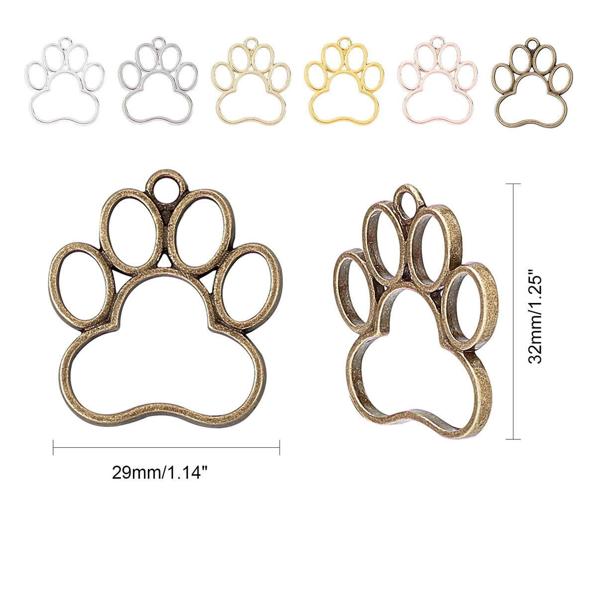 Olycraft 24Pcs Dog Paw Open Bezel Charms 29X32Mm Alloy Dog Paw Frame Pendants Color-Lasting Hollow Resin Frames With Loop For Re