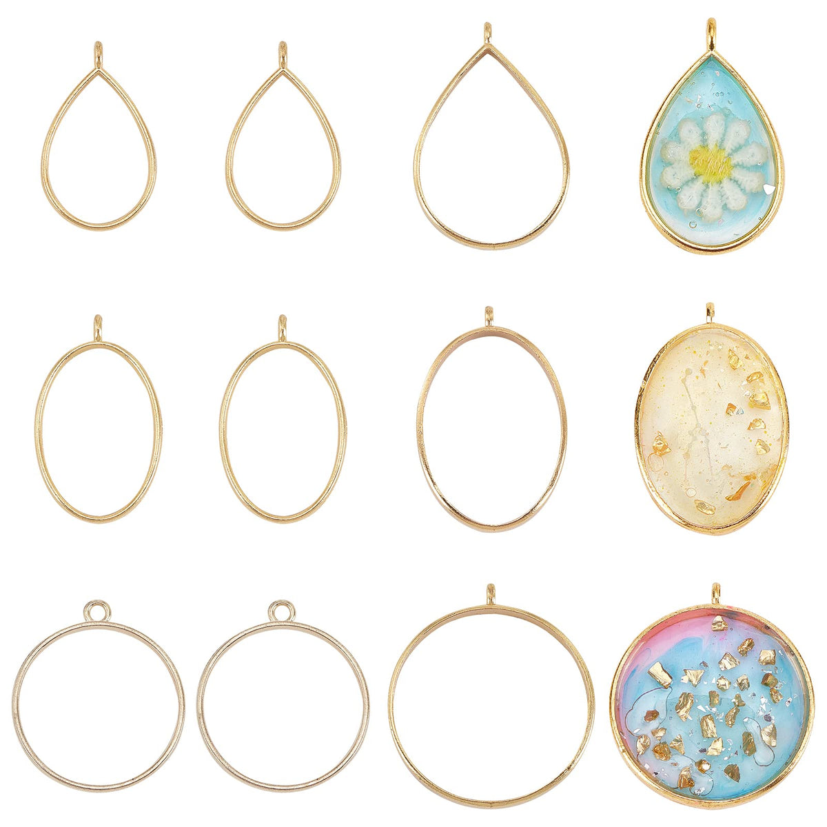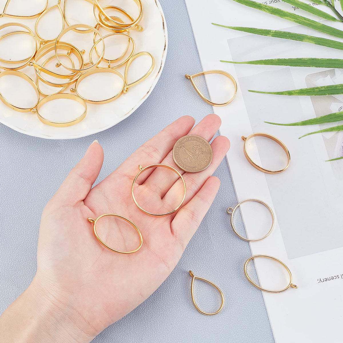 Olycraft 30Pcs Open Back Bezel Pendant Charms Gold Round Frame Pendants Bezel Charms Open Back Frame With 1 Loop For Jewelry Mak