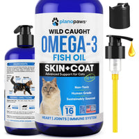 Does your puppy, dog, cat, kitten, ferret, rabbit, or horse have a dull, dry or coarse skin + coat? Our omega 3 cats formula is better than wild alaskan salmon oil for cats and may help support healthy skin and coat, relieve dandruff for cats, and makes a good cat food flavor enhancer. Are you looking for allergy relief for cats? Our cat oil supplements for skin and coat contain omega 3 6 9 for cats which may help provide safe effective allergy relief treatment for kittens or cats of any age, size, or breed. What can Plano Paws Omega Oil for Cats do for your cat? 1. Decrease shedding and improve skin and coat. 2. Relieve allergies and itchy skin. 3. Support bone and joint health. 4. Maintain optimal healthy heart for cats 5. Provide immune system support. 6. Support cognitive function. Goes Great with Any Meal - For pet parents looking for an alternative to capsules, raw treats, or soft chews, all it takes is a few pumps of our omega 3 6 9 oil to mix nicely with dog or cat food. A recent Cleveland Clinic study shows the 3 Healthiest Fish For Your Health are 1. Sardines 2. Herring 3. Mackerel. Plano Paws wild caught omega 3 for cats contains all 3 making our liquid fish oil for cats skin and coat supplement a better choice than cat salmon oil. When choosing pet supplements, supplements for dogs, kitten supplements, or cat vitamins and supplements be rest assured Plano Paws will provide the highest quality products available that contain the fatty acids your dog or cat needs. When you think fish oil cats or cat omega 3 supplement for cat dry skin, choose Plano Paws skin and coat supplement for cats. Plano Paws Wild Caught Icelandic Omega 3 Fish Oil for Cats comes in 3 convenient sizes. We offer 8 oz and 16 oz bottle sizes. You can choose the cat coat supplement size that works best for you and your cats needs. Plano Paws is proud to manufacture safe all-natural fish oil supplements for cats and fish oil for dogs to help your furry family members.