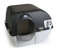 The Elite Roll 'n Clean Self Cleaning Litter Box Regular features chrome accents stronger clips stronger more durable sifting grate and a bonus litter step. It also features our signature Midnight Black color.