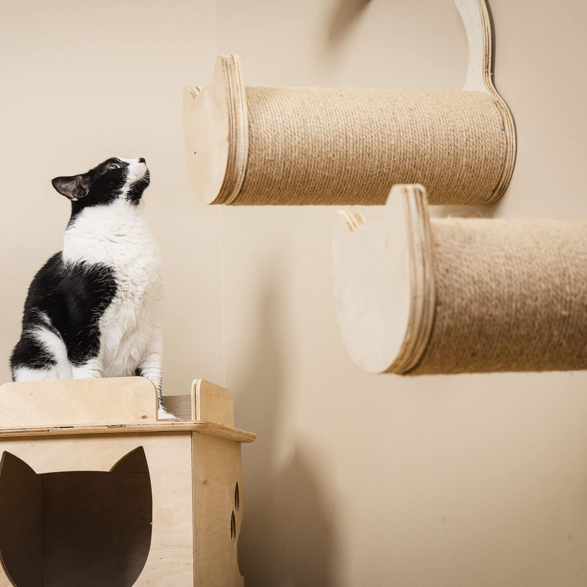 Protect your furniture and condition your cats claws with the On2 Pets Wall-Mounted Scratcher Cat Steps. Equipped with two separate scratching posts these satisfying sisal-covered posts are ideal for cats of all ages and in every developmental stage. Redirect your cats behavior with this minimalistic scratching alternative built for durability and stimulation while not sacrificing style. Catify any room of the house by creating an interactive cat wall and provide vertical developmental spaces for your cats, great for cats at all life stages but specially made for kittens in their early developmental stage. Promote your indoor cats wellbeing by incentivizing jumping and climbing while staying within the safety and security of your home. After product research and testing, these posts have been sized to ensure that your cat has enough room for a proper stretch of its back while satisfying its natural urge to scratch. Safeguard your home furniture from getting damaged and promote your cats health and well-being by providing them with this attractive scratching alternative.