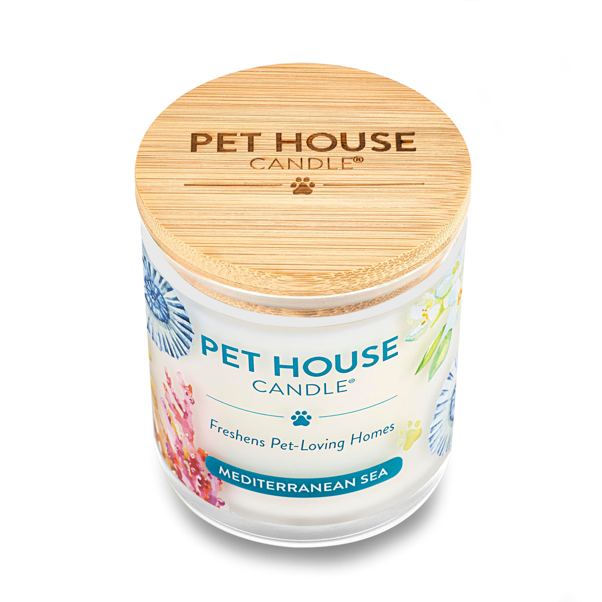 One Fur All Pet House Candle Plant-Based/Soy Candle - Clean Burning Scented Candles, Long Lasting Pet Odor Candle For Home - Mediterranean Sea