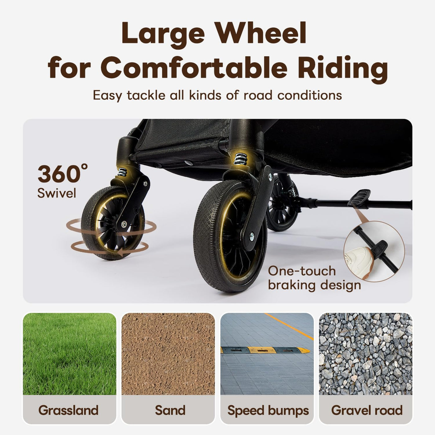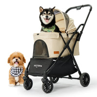 ?One-Pull Open Ver.?Pettena Dog Stroller For 2 Dogs, One-Touch Foldable Dog Stroller For Small/Medium Dogs Cats Up To 55 Lbs, Cat Strollers For 2 Cats, Large Space Puppy Stroller, Khaki