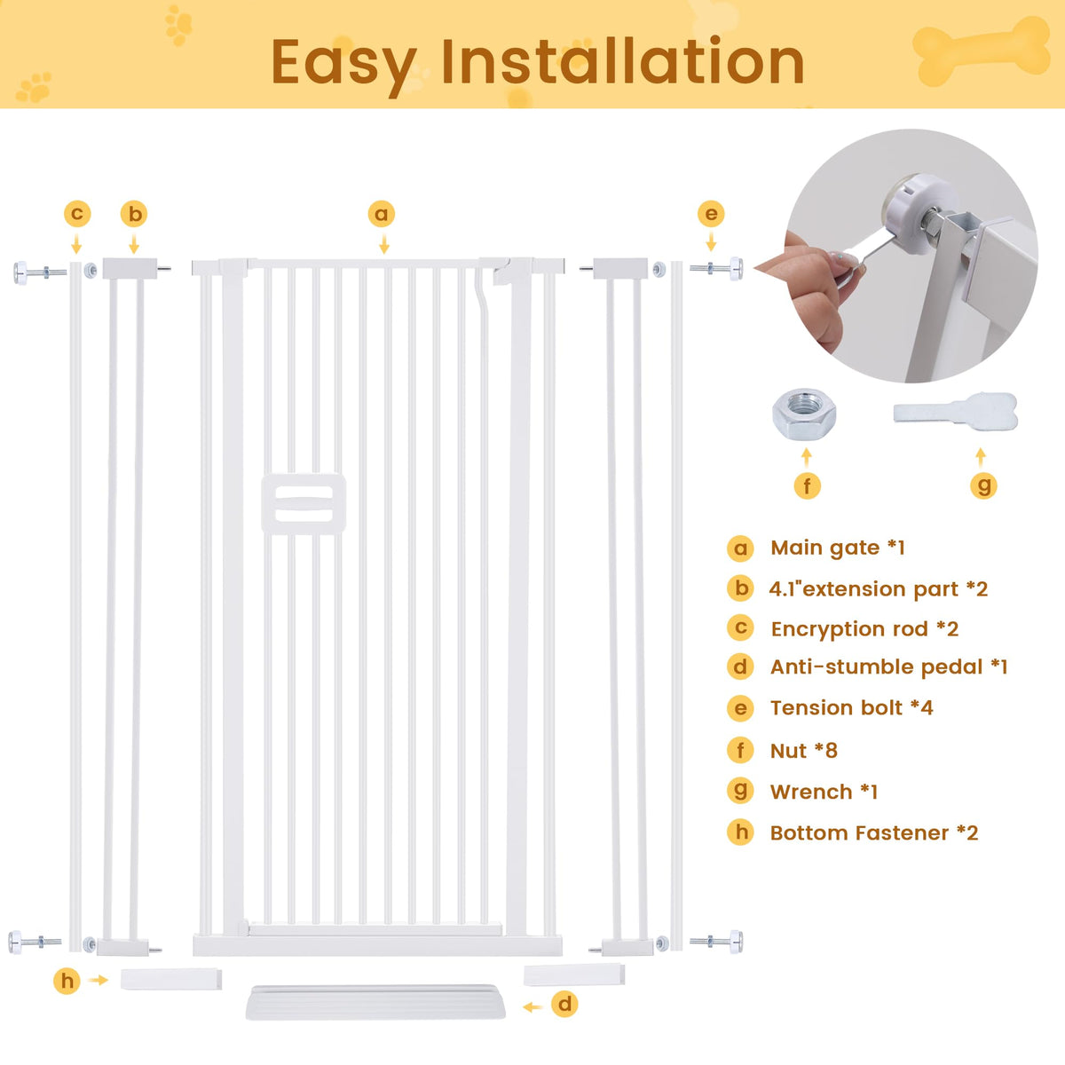 Q: Is the OneBlis cat gate easy to install?A: Yes, the OneBlis cat gate features a no-drilling installation process with adjustable tension bolts, allowing for easy setup without damaging your walls or doorways.