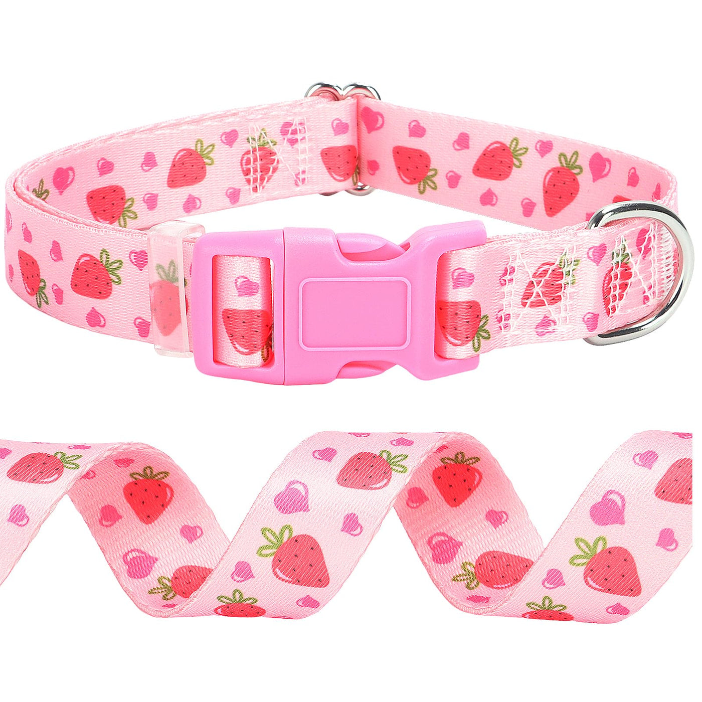 Onefojojo Dog Collar - Cute Pink Strawberry Design, Soft Nylon Adjustable Collar For Xl Dogs, Quick-Release Buckle, Durable Pet
