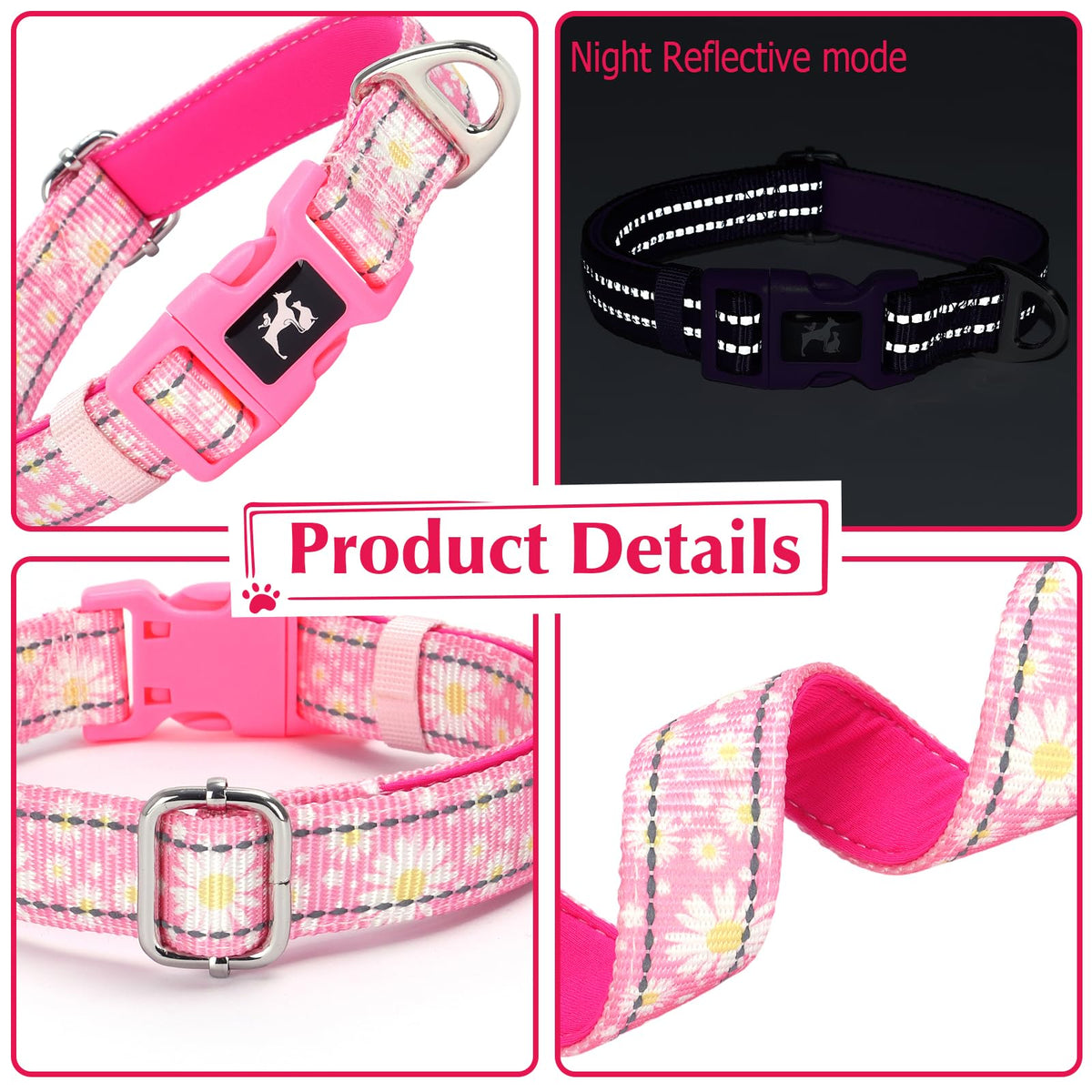 Onefojojo Dog Collar For Medium Dogs,Reflective Pink Daisy Dog Collar For Female Girl Dogs (Daisy M