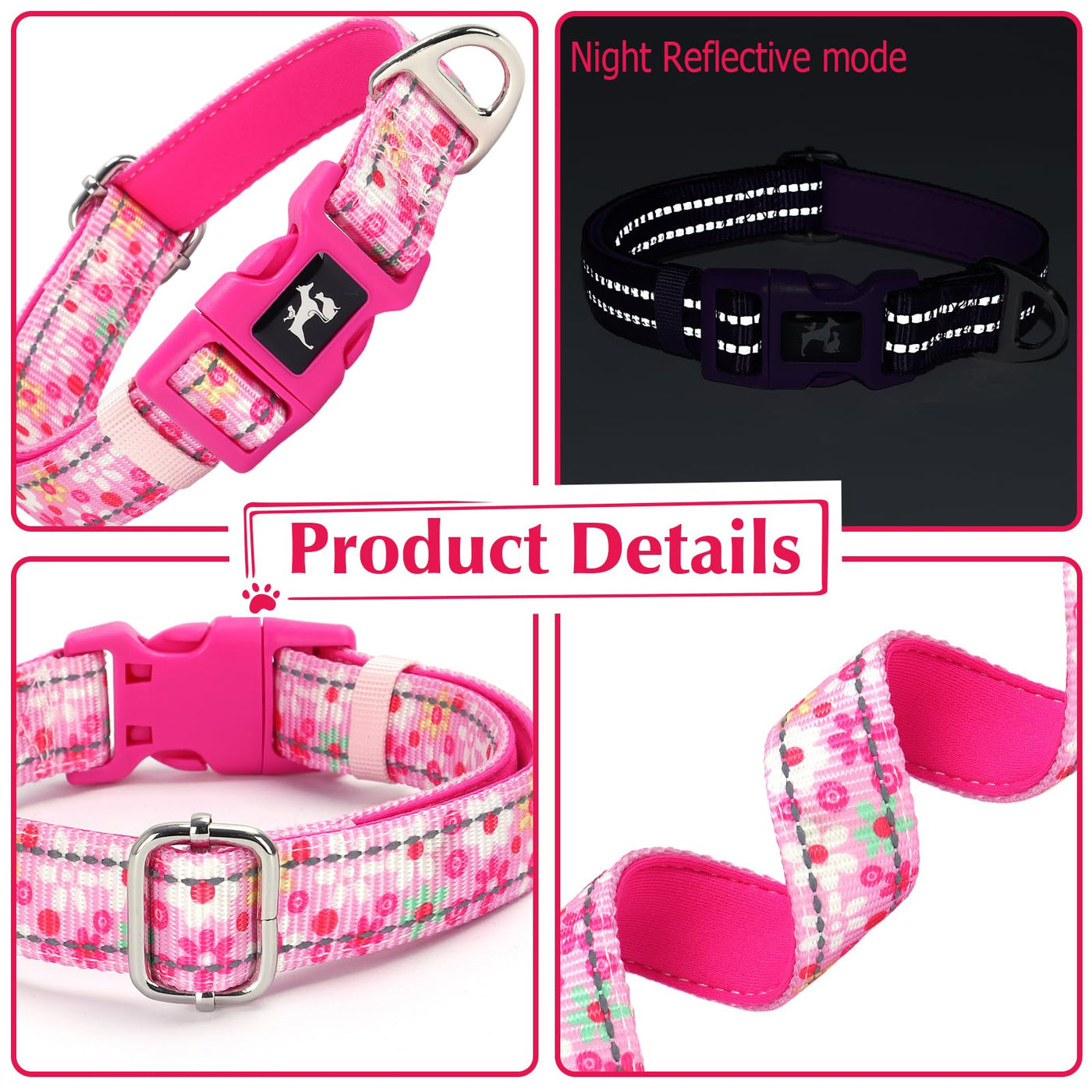 Onefojojo Girl Dog Collar,Reflective Cute Pink Flower Collar For Medium Large Extra Large Female Dogs(Flower M
