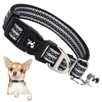 Onefojojo Reflective Dog And Cat Collar With Bell - Hypoallergenic Adjustable Puppy Collar For Small Pets, Soft Nylon Night Safe