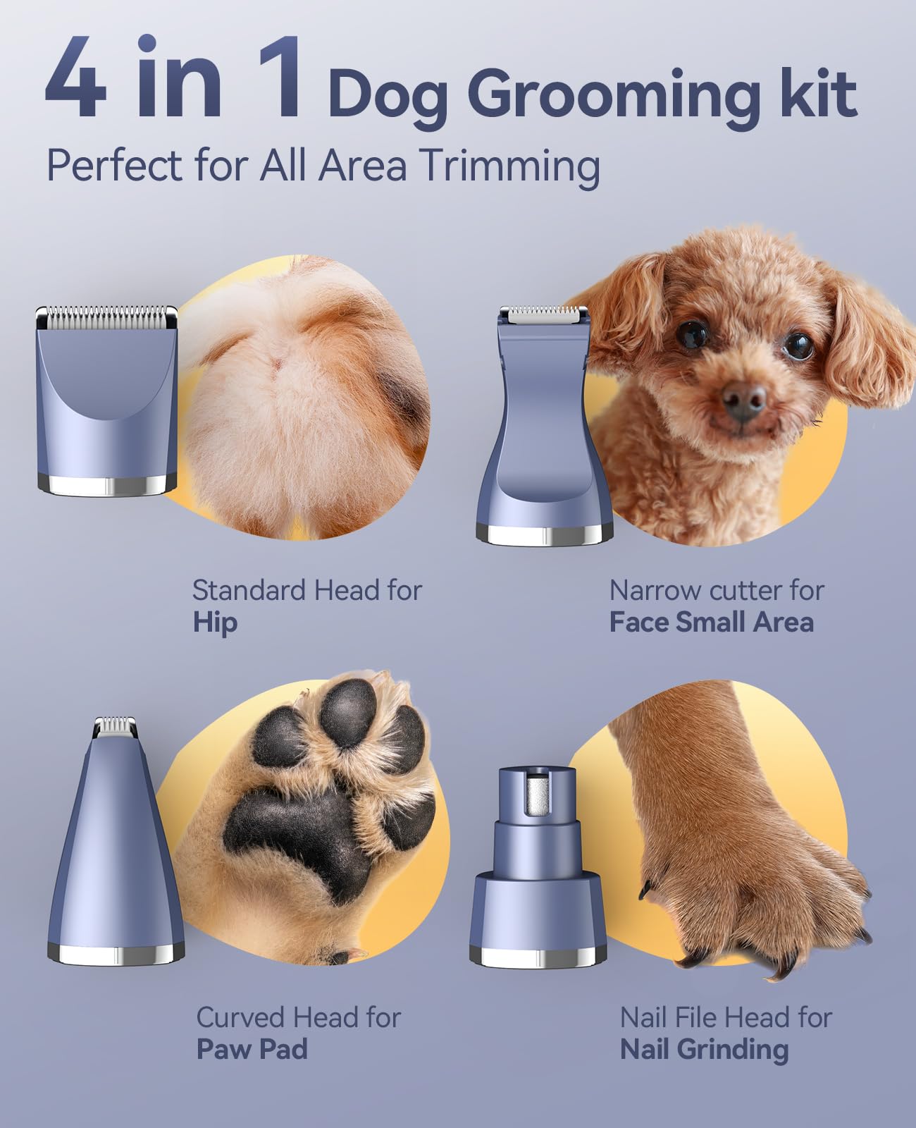 Oneisall Dog Clippers Grooming Kit 4 In 1, Low Noise Dog'S Paw Trimmer&Nail Grinder,Ipx7 Waterproof Cordless Puppy Trimmer Shave