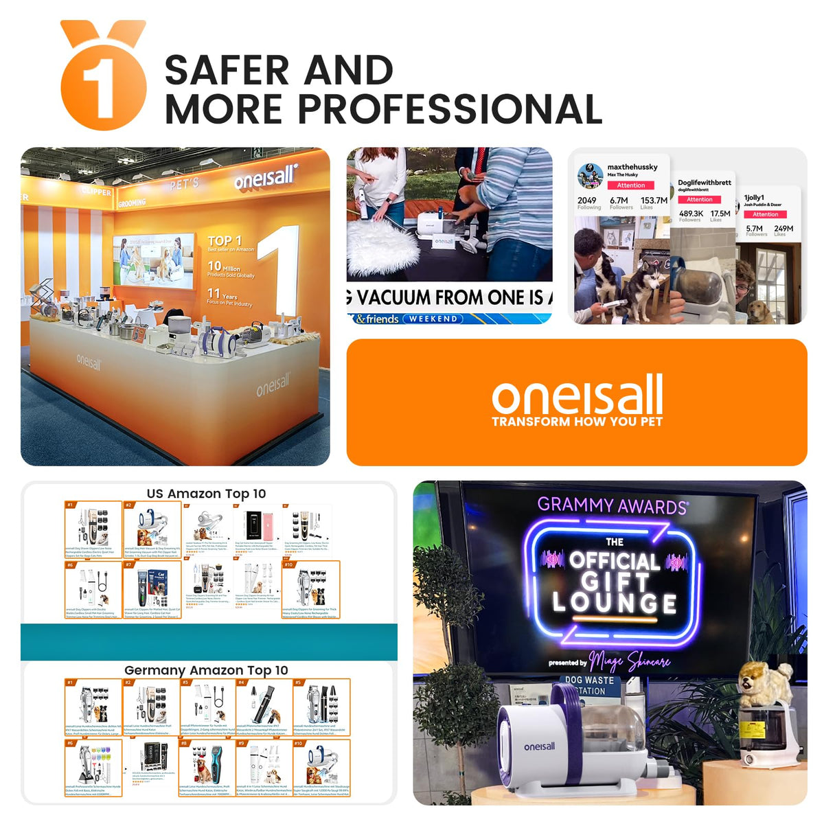 Q: Is the oneisall Dog Hair Vacuum suitable for all dog breeds?A: The oneisall Dog Hair Vacuum is designed to work effectively with various dog breeds, especially those that shed. The included grooming tools, such as the deshedding brush and electric clipper, cater to different coat types, making it versatile for most pets.