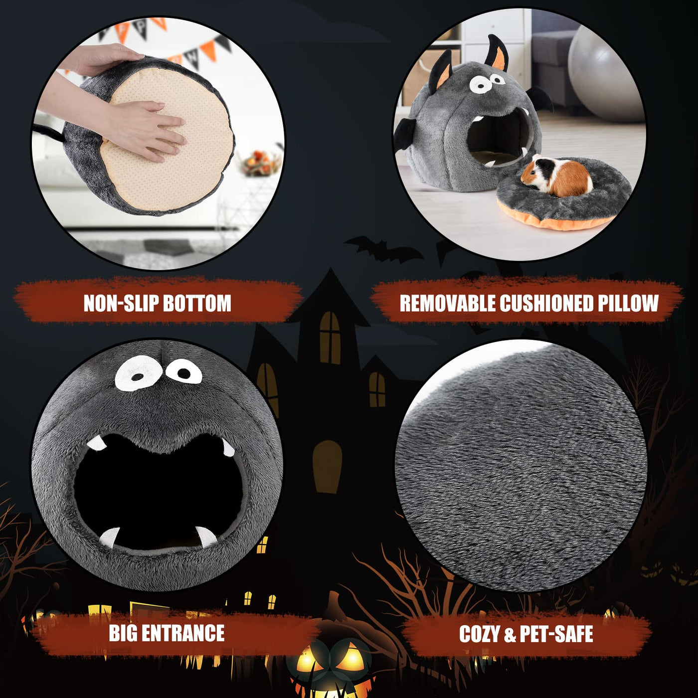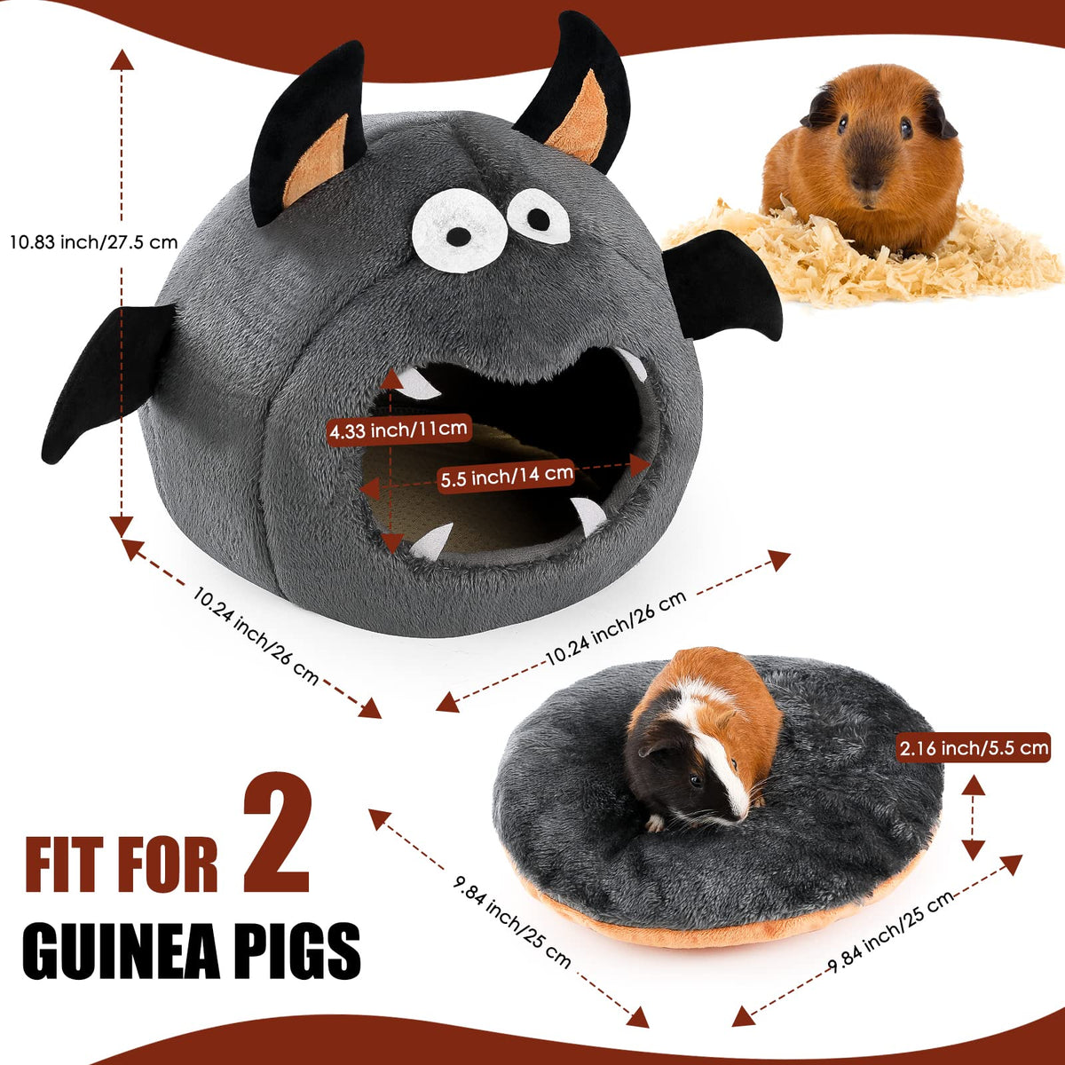 ONEJU Guinea Pig Bed, Guinea Pig Hideout, Rabbit Bed, Bunny Hideout, Guinea Pig Cage Accessories for Guinea Pig, Bunny, Hamster, Chinchilla, Ferret, Rabbit and Other Small Pets - Bat Shape Specification: Guinea Pig Bed Materials: Polyester Fiber Guinea Pig Bed Shape: Bat Guinea Pig Bed Color: Black Guinea Pig Bed Length: 10.24”/26cm Guinea Pig Bed Width: 10.24”/26cm Guinea Pig Bed Height: 10.83”/27.5cm Guinea Pig Bed Entrance: 4.33”/11cm x 5.5“/14cm Small Pillow of Guinea Pig Bed: Length of Guinea Pig Bed Small Pillow: 9.84”/25cm Width of Guinea Pig Bed Small Pillow: 9.84”/25cm Height of Guinea Pig Bed Small Pillow: 2.16”/5.5cm Guinea Pig Bed Package Include: 1 x ONEJU Guinea Pig Bed - Bat Shape