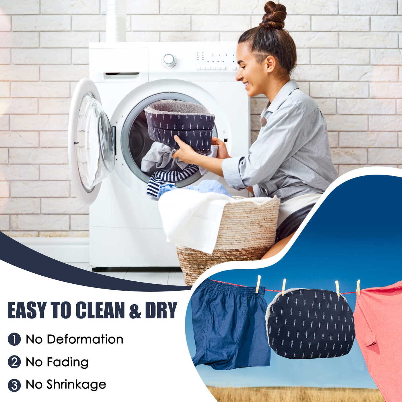 Q: Is the ONEJU Pet Bed easy to clean?A: Yes, the ONEJU Pet Bed features dirt-resistant PVC dotted bottoms and is made from machine washable materials, making it easy to clean and maintain. You can simply toss it in the washing machine for hassle-free care.