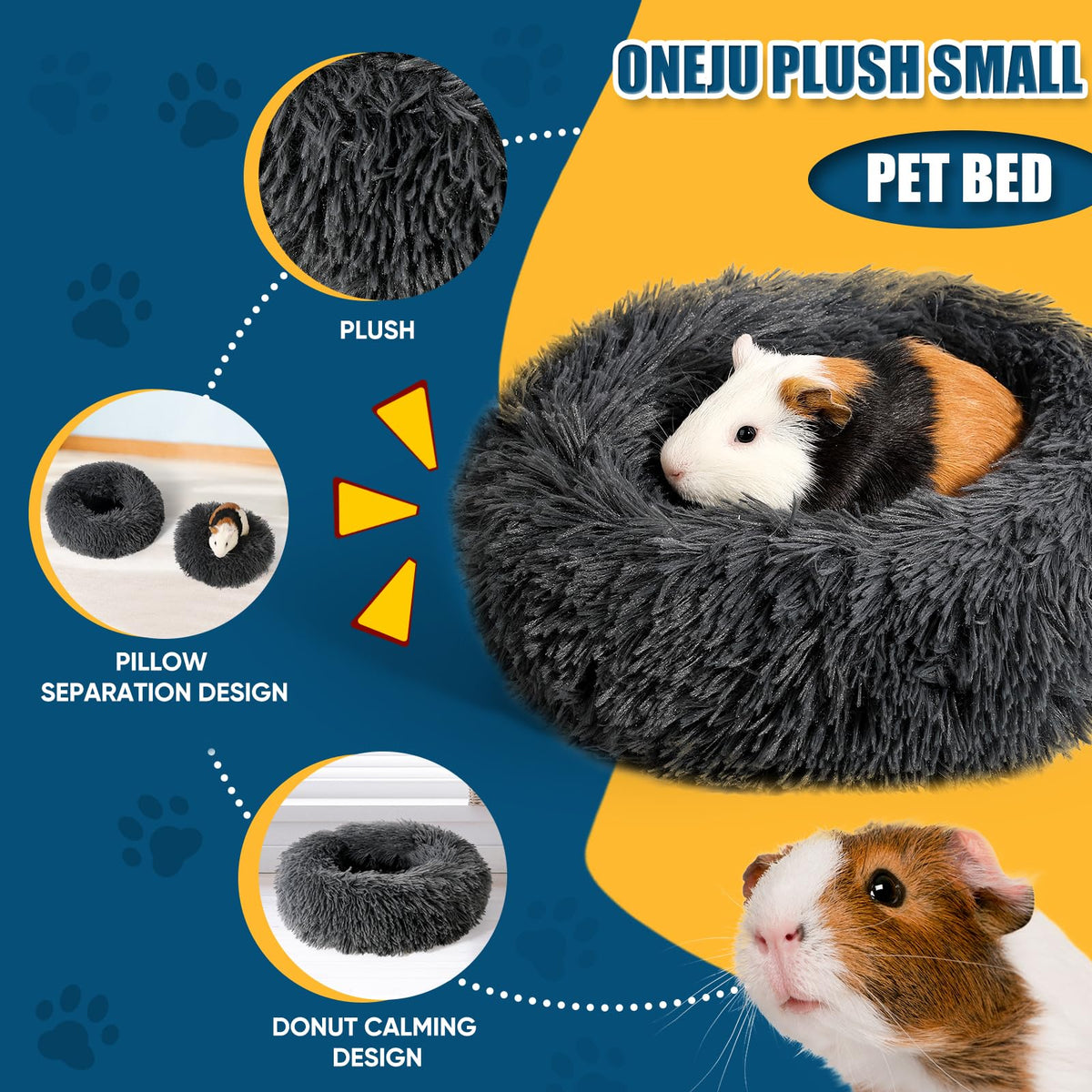 Oneju Plush Guinea Pig Bed, Plush Guinea Pig Donut Bed, Plush Guinea Pig Hideout, Rabbit Bed, Plush Bunny Hideout, Small Pet Snuggle Bed For Guinea Pig, Bunny, Ferret, Rabbit And Other Small Pets Specification: Guinea Pig Bed Materials: Polyester Fiber Guinea Pig Bed Shape: Plush And Donut Shape Guinea Pig Bed Color: Dark Grey Guinea Pig Bed Closure Type: Zipper Closure Guinea Pig Bed Length: 13 /33Cm Guinea Pig Bed Width: 13 /33Cm Guinea Pig Bed Height: 3.54 /9Cm Guinea Pig Bed Inside Dimension: Guinea Pig Bed Inside Length: 7.09 /18Cm Guinea Pig Bed Inside Width: 7.09 /18Cm Two Small Pillows Of Guinea Pig Bed: Diameter Of The Removable Guinea Pig Bed Small Pillow: 8.66 /22Cm Height Of The Removable Guinea Pig Bed Small Pillow: 2.95 /7.5Cm Guinea Pig Hideout Package Include: 1 X Oneju Plush Guinea Pig Bed