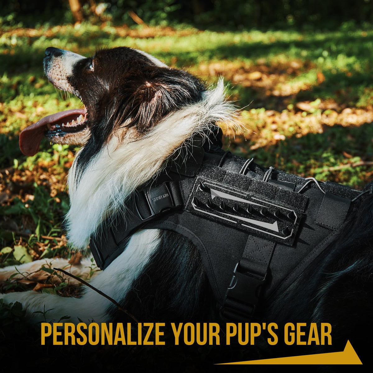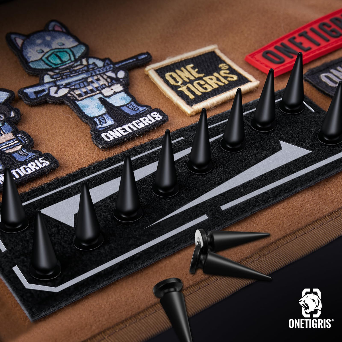 Onetigris Dog Vest Harness Hook Loop Lazer-Cut 3M Light-Reflective Moral Patch With Detachable Riveted Metal Spikes