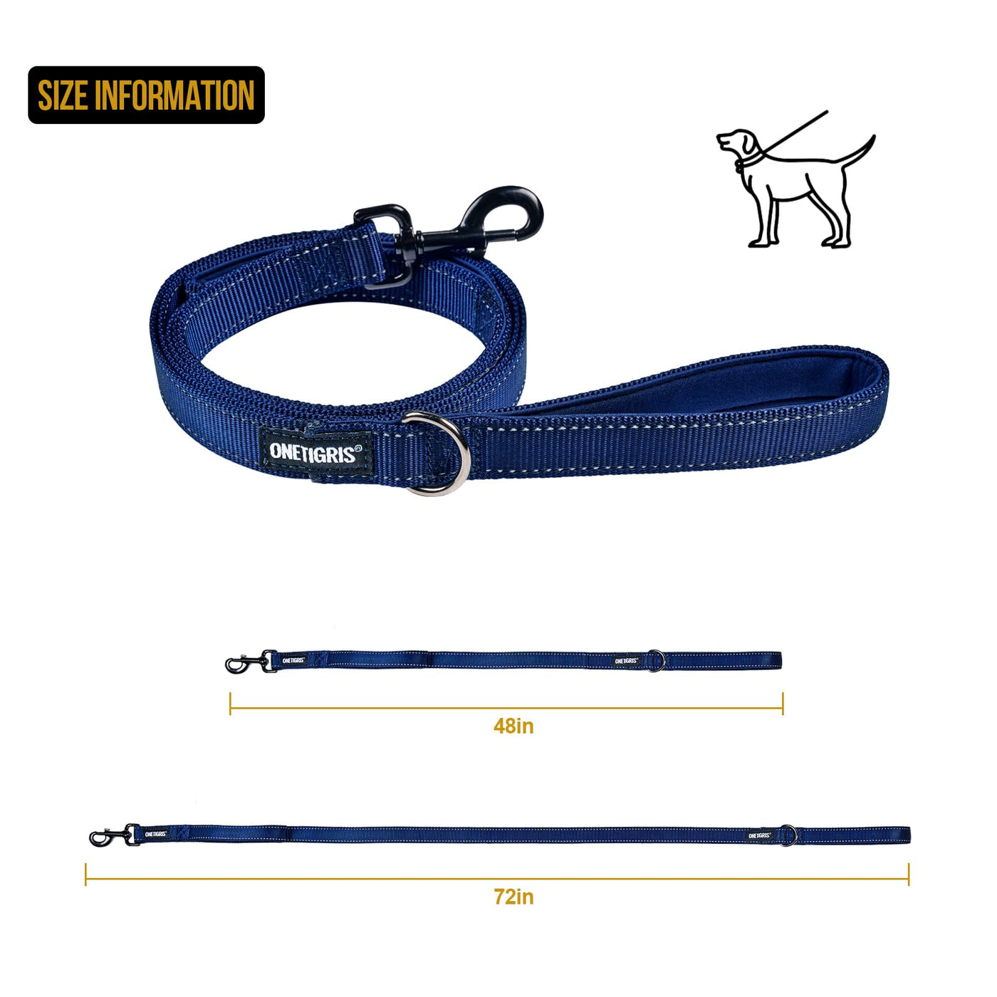 Why Choose Onetigris Dog Leash? A Grab Handled Leash Made From Extra Thick Nylon Webbing Of Rugged Durability, With A Strength Tested Zinc Alloy Swivel Snap Clip, Designed Specifically For Medium To Large Dog Breeds. The No-Pull Front Handle Discourages Dogs That Pull On Lead And Prevents Him/Her From Running Into Traffic, Offering Better Control In Case Of Emergencies Or Sudden Lunges. The Light Reflective Stitches On Both Sides Are Highly Visible To Car Lights And Alert Passing Cars Of You And Your Dogs Presence On Daily Walks And In Low Light Conditions.&Nbsp; Onetigris Dog Leash Multilayered Nylon Webbing Construction Of Durability And Dirt/Water/Abrasion Resistance&Nbsp; Sturdy Zinc Alloy Swivel Clip Strength Tested At 660Lb/300Kg, Suitable For Medium To Large Dogs&Nbsp; Padded Top Handle And Front Grab Handle For Effective Canine Control And A No-Pull Dog Walking Experience&Nbsp; Light Reflective Stitches That Reflect Car Lights For Extra Safety During Daytime/Nighttime Walks And In Low Light Conditions&Nbsp; Long Leash Option For Outdoor Walks To Let Your Dog Explore His/Her Surroundings&Nbsp; Short Leash Option For Walks In The City, Urban, Or Crowded Areas With More Traffic&Nbsp; Specifications&Nbsp; Material: Nylon Webbing, Zinc Alloy Leash Clip&Nbsp; Length/Weight: 4Ft/122Cm (5.6Oz/160G), 6Ft/183Cm (7Lb/200G) Width: 1 /2.5Cm&Nbsp; Leash Clip Pull Strength: 660Lb/300Kg&Nbsp; Package Includes&Nbsp; Onetigris Dog Leash *1&Nbsp;